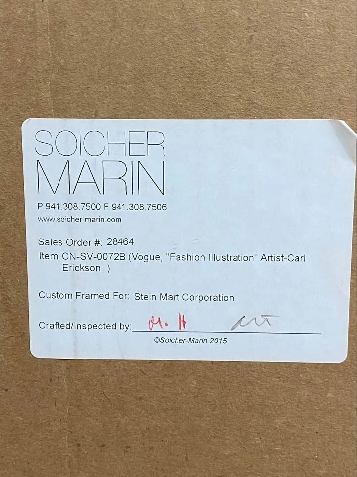Set of 3 fashion illustrations by Vogue artist Carl "Eric" Erickson (dated 1949). These are high-quality licensed reproductions from the Condé Nast Collection by Soicher Marin.