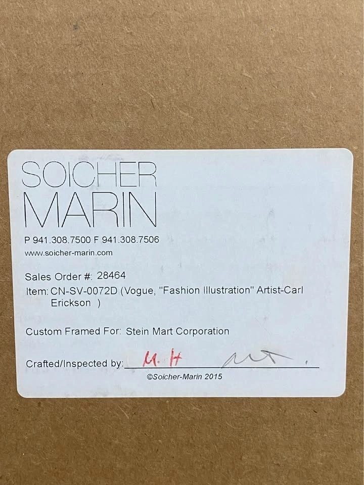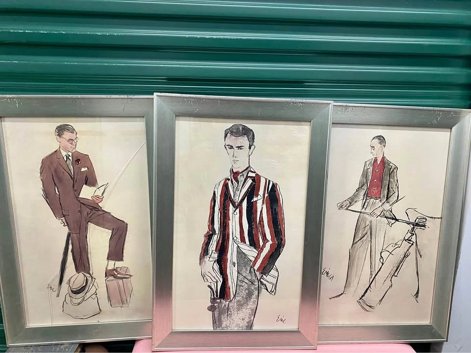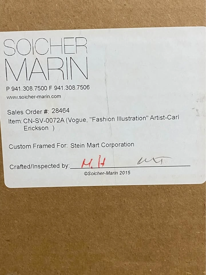Set of 3 fashion illustrations by Vogue artist Carl "Eric" Erickson (dated 1949). These are high-quality licensed reproductions from the Condé Nast Collection by Soicher Marin.
