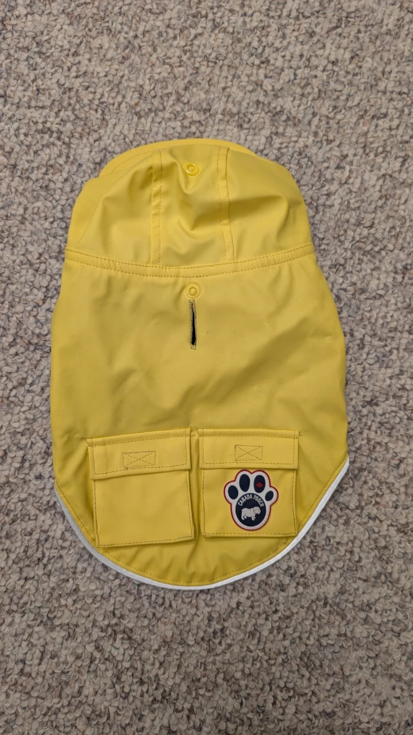 Keep your furry friend dry and stylish with this Canada Pooch raincoat! It's a bright yellow colour and size 10. Perfect for those rainy day walks!