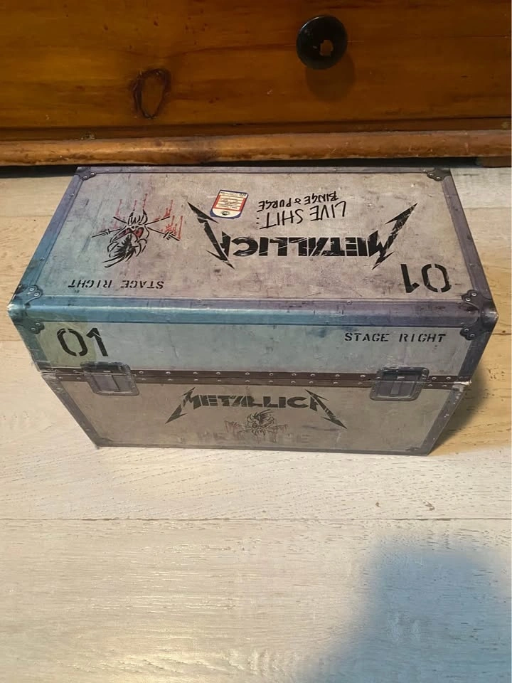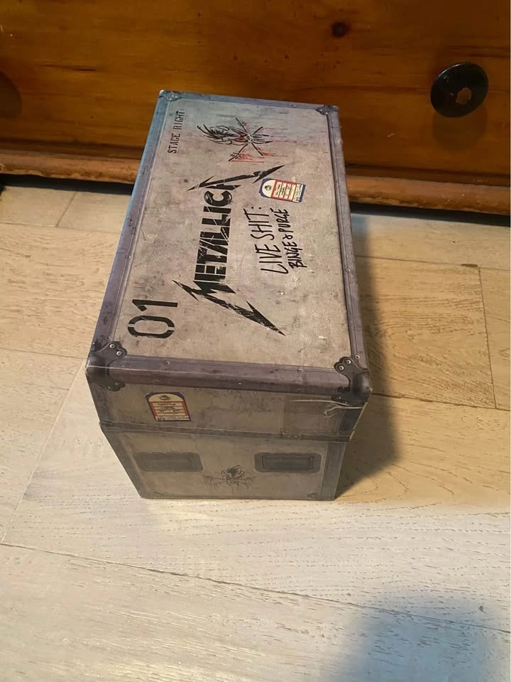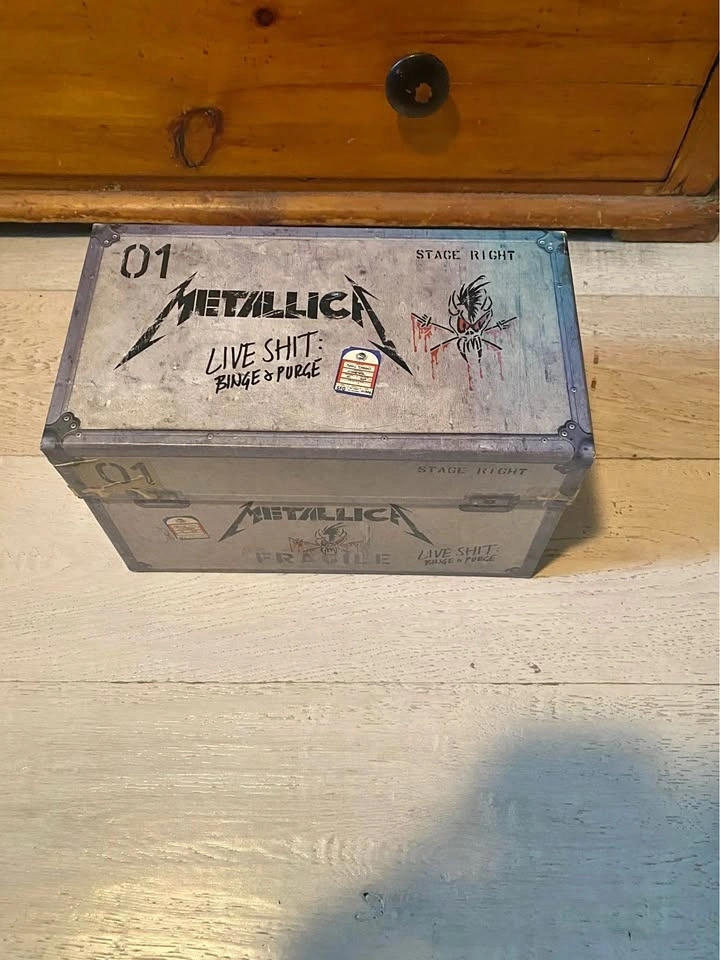 Metallica Live Sh*t Binge and Purge box set complete with book, stencil, 3 vhs tapes, and 2 tapes in original cases. Set box is made to look like a locker.
