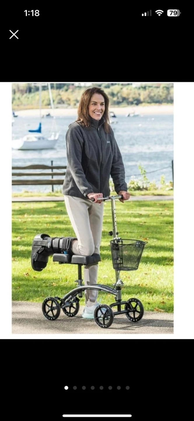 Selling abrand new Drive Medical knee walker scooter! It's perfect for getting around while recovering from a foot or ankle injury. It features a comfortable padded knee rest and a convenient basket for carrying essentials. The scooter is designed for stability and easy maneuverability. Box included