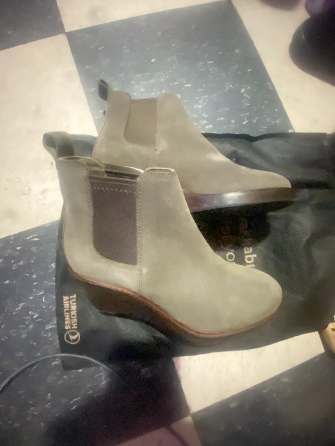 These are a pair of beige Chelsea boots. They appear to be in good condition and would be great for fall!