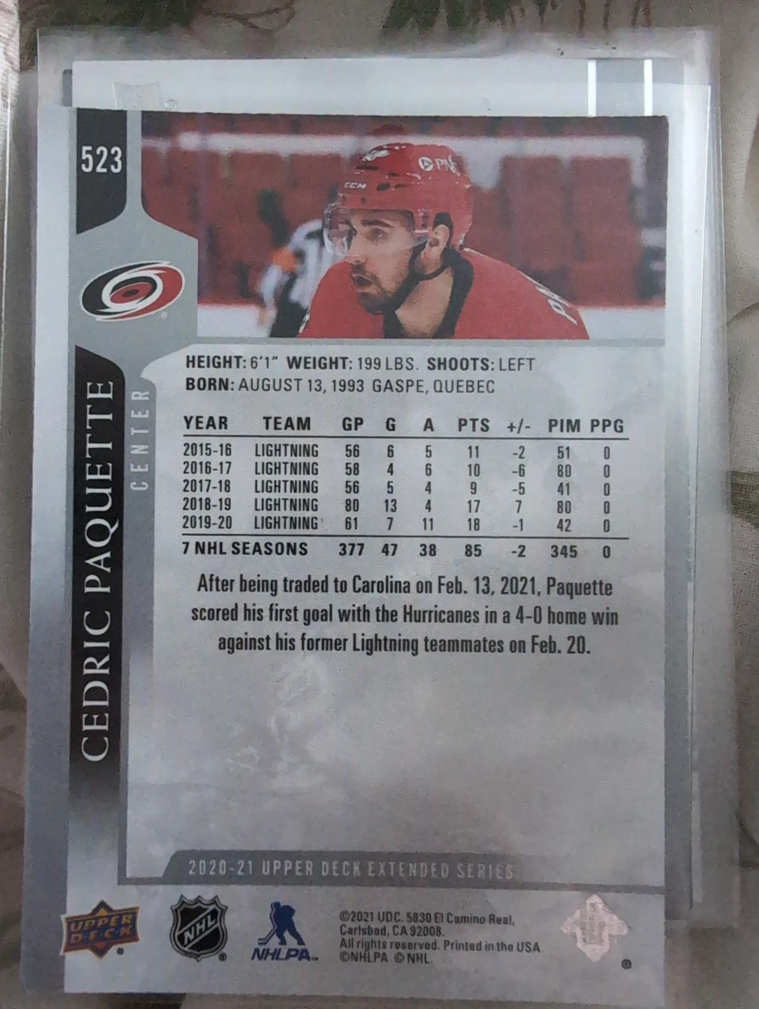 Cedric Paquette Upper Deck Hockey Card