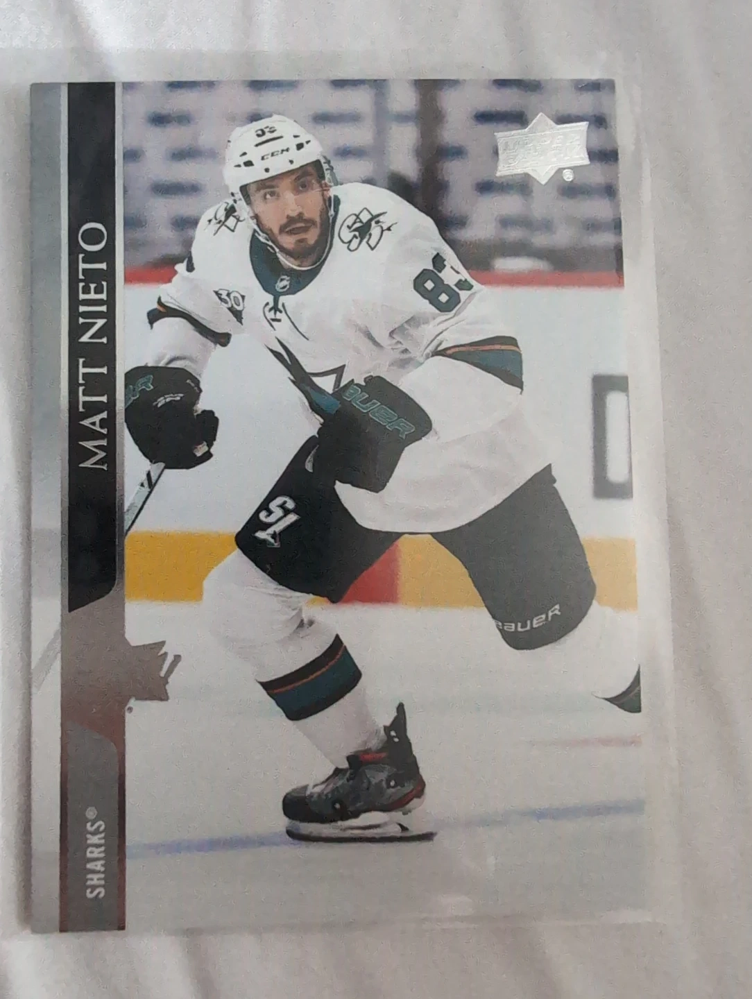 Selling a Matt Nieto hockey card from the 2020-21 Upper Deck Extended Series! This card features Nieto in his San Jose Sharks jersey. A great addition to any hockey card collection