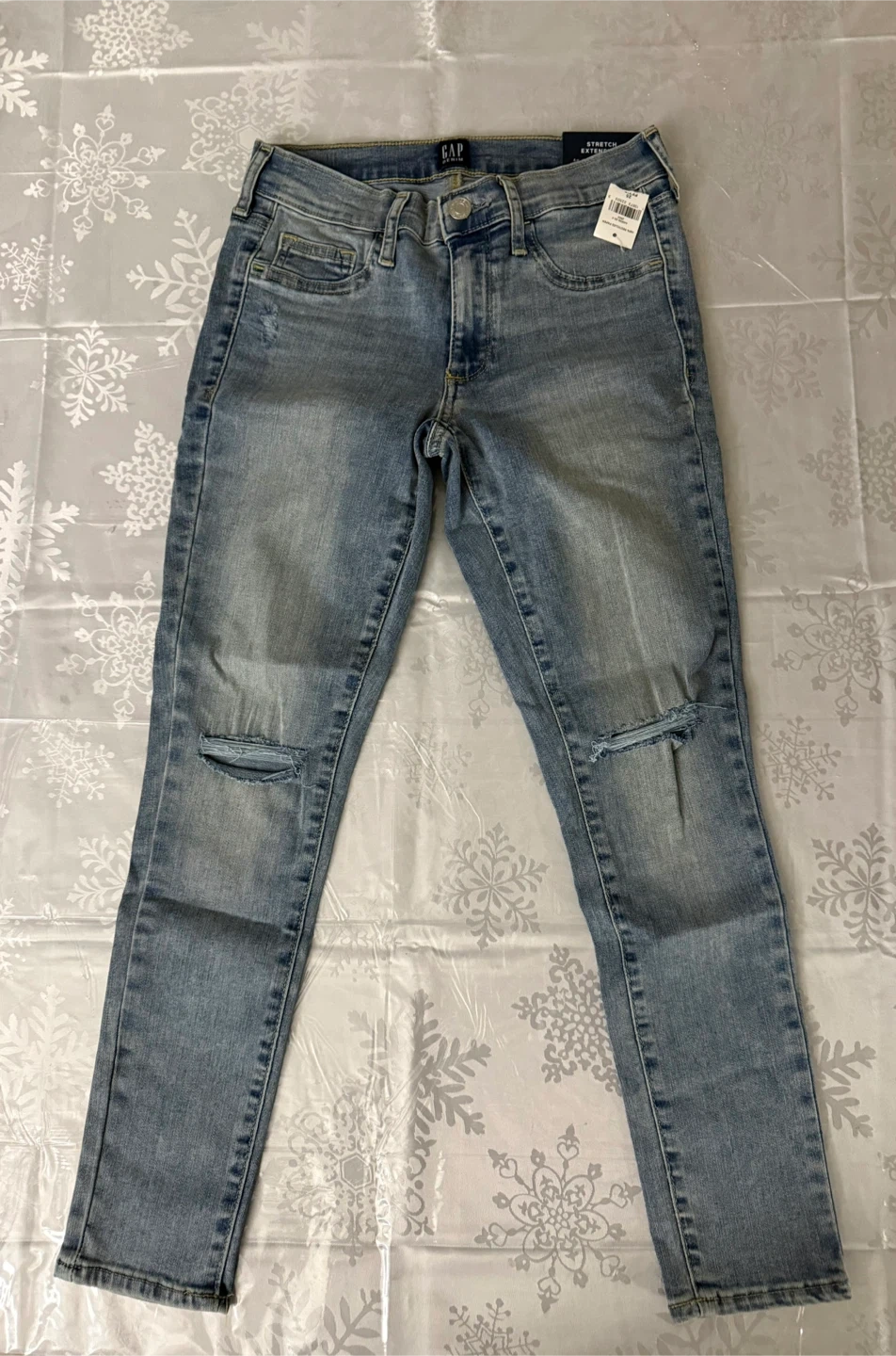 Selling a new pair of Gap Denim Favorite Jegging jeans in size 25 Petite! These jeans feature a mid-rise and a skinny leg.