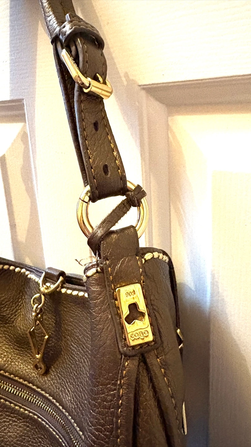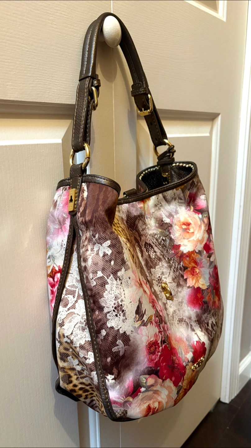 A stylish COBO hobo bag in a beautiful brown leather! The interior has a lovely floral and animal print design. It's in great condition and ready for a new owner.
