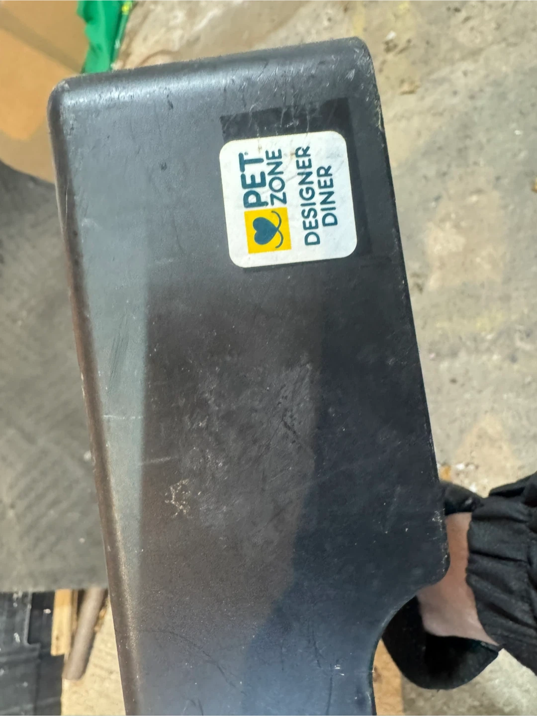 Selling a Pet Zone Designer Diner, which is an elevated pet bowl stand. It is black and holds two bowls. Great for keeping your furry friend's feeding area tidy!