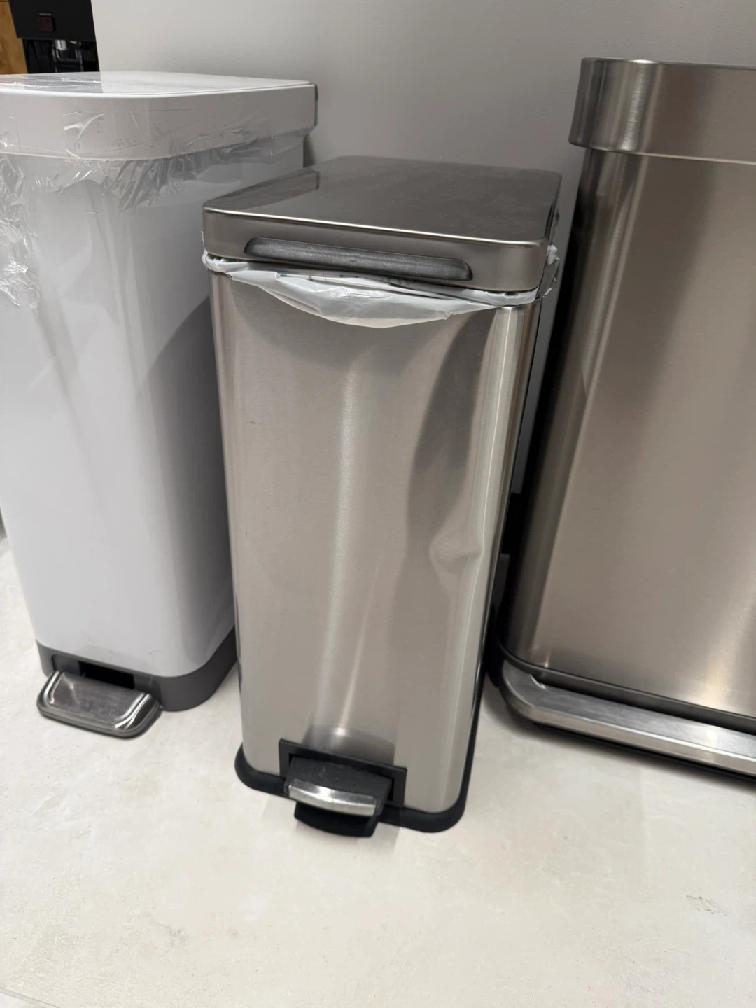 Selling a stainless steel step trash can. It's in good condition and ready for a new home. The step mechanism works smoothly, and it's a great size for a kitchen or bathroom
