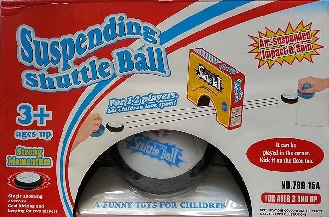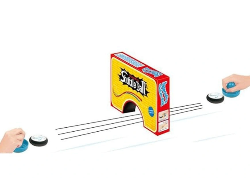 Suspending Shuttle Ball tabletop game — a fun hover-style air hockey game for kids and families. The puck floats on air, allowing players to hit it back and forth using the handheld paddles.