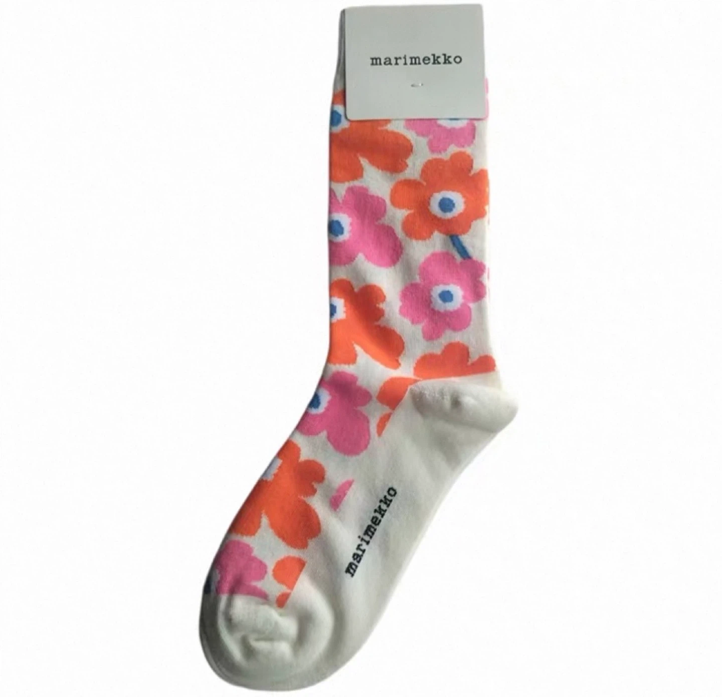 I have some brand new Marimekko socks for sale! They come in a variety of fun and colourful patterns. Perfect for adding a pop of colour to your outfit or as a gift for someone special. They're brand new and still in their original packaging