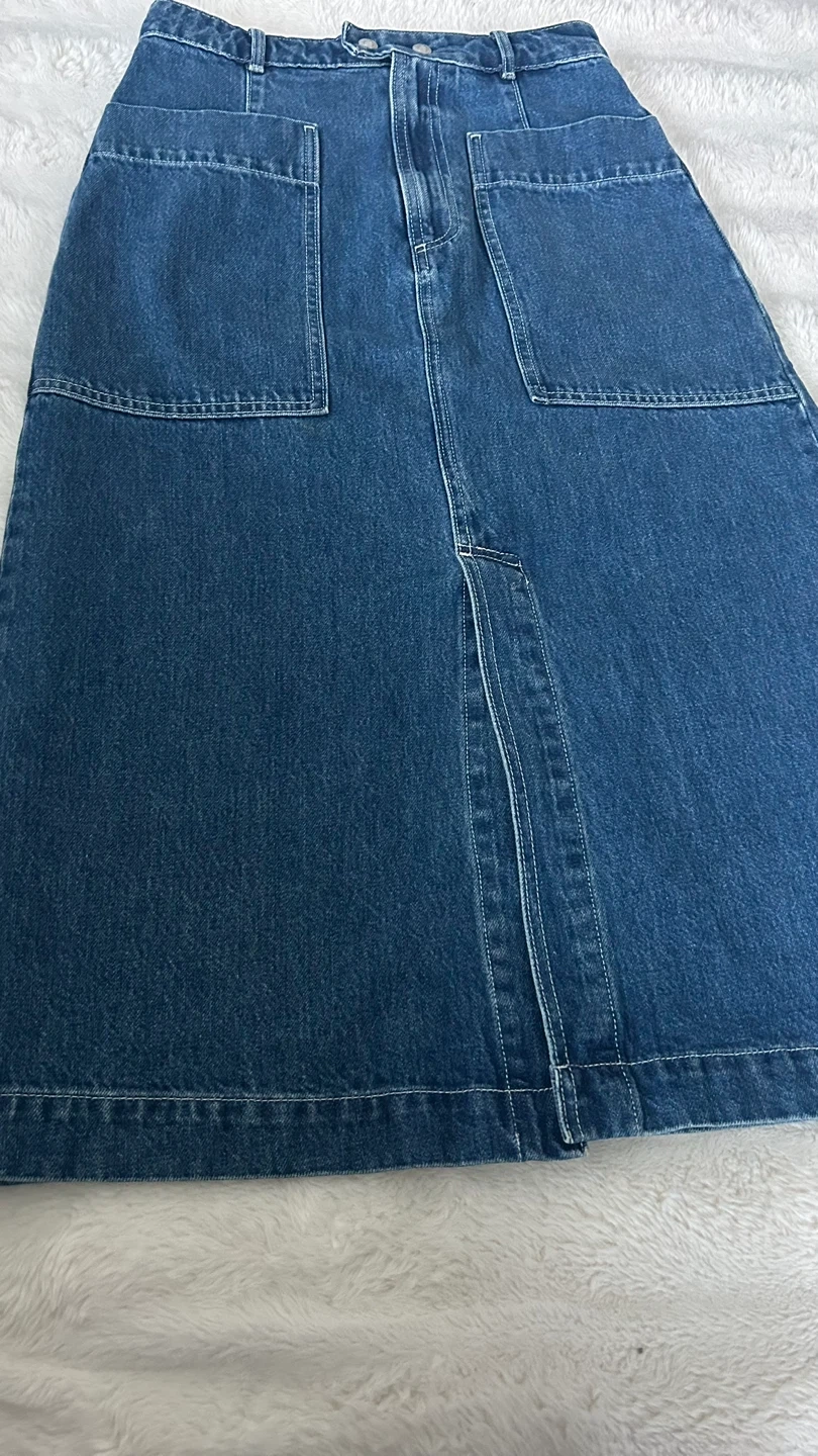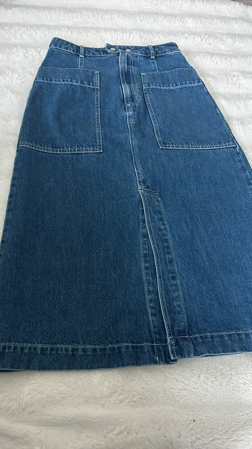 Selling a GAP denim skirt in size 27. It's a stylish and comfortable piece, perfect for everyday wear. The skirt features a classic denim look with functional pockets. Great for casual outings or dressing up with a nice top! One of a kind! Willing to negotiate pricing. Original price is $115. Ready for gifting!