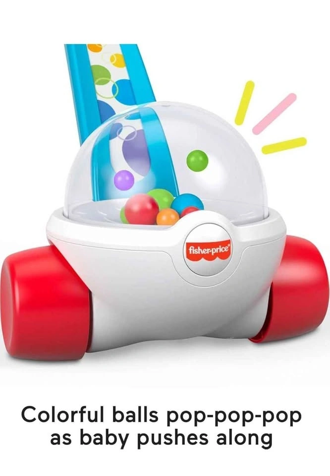 Fisher-Price Baby & Toddler Toy Corn Popper Blue Push-Along with Ball-Popping Action for Infants Ages 1+ Years, 2-Piece Assembly