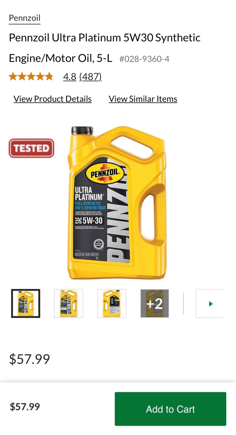 Buy & SellPennzoil 5W20 Ultra Platinum Full Synthetic Engine Oil, 5LPennzoil 5W20 Ultra Platinum Full Synthetic Engine Oil, 5L$35Selling Pennzoil 5W30 Ultra Platinum Full Synthetic Motor Oil.ConditionNewWHERE TO MEETWalkerView MapSELLERHartWalker494 reviews2 chats·4 favorites·73 viewsSEND CHAT TO SELLERHi Hart! I’m interested in your listing.Hi Hart! I’m interested in your listing.Get the Karrot app to chatSign In to chat