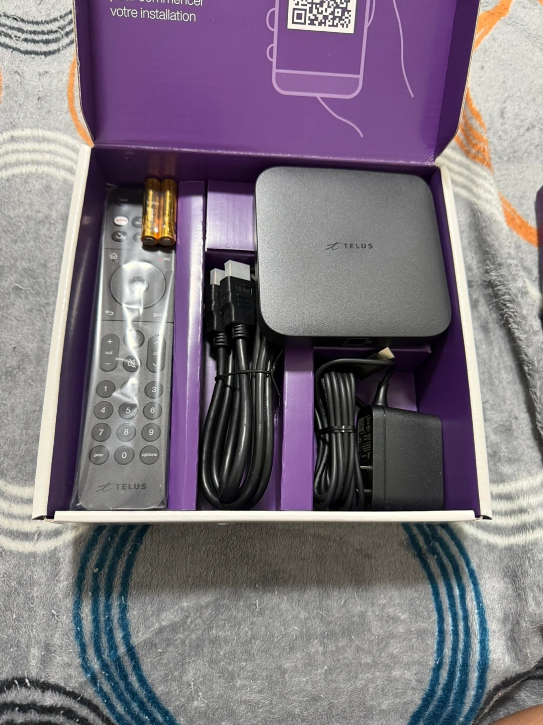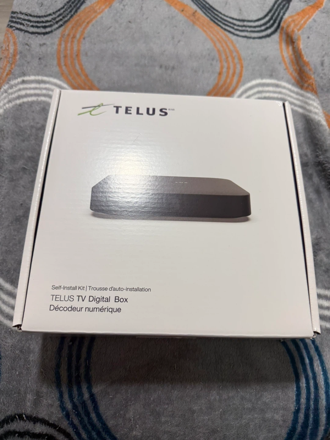 Selling a TELUS TV Digital Box self-install kit. It comes with everything you need to get set up. The box includes the digital box itself, a remote, HDMI cable, power adapter, and batteries. Perfect for upgrading your home entertainment!