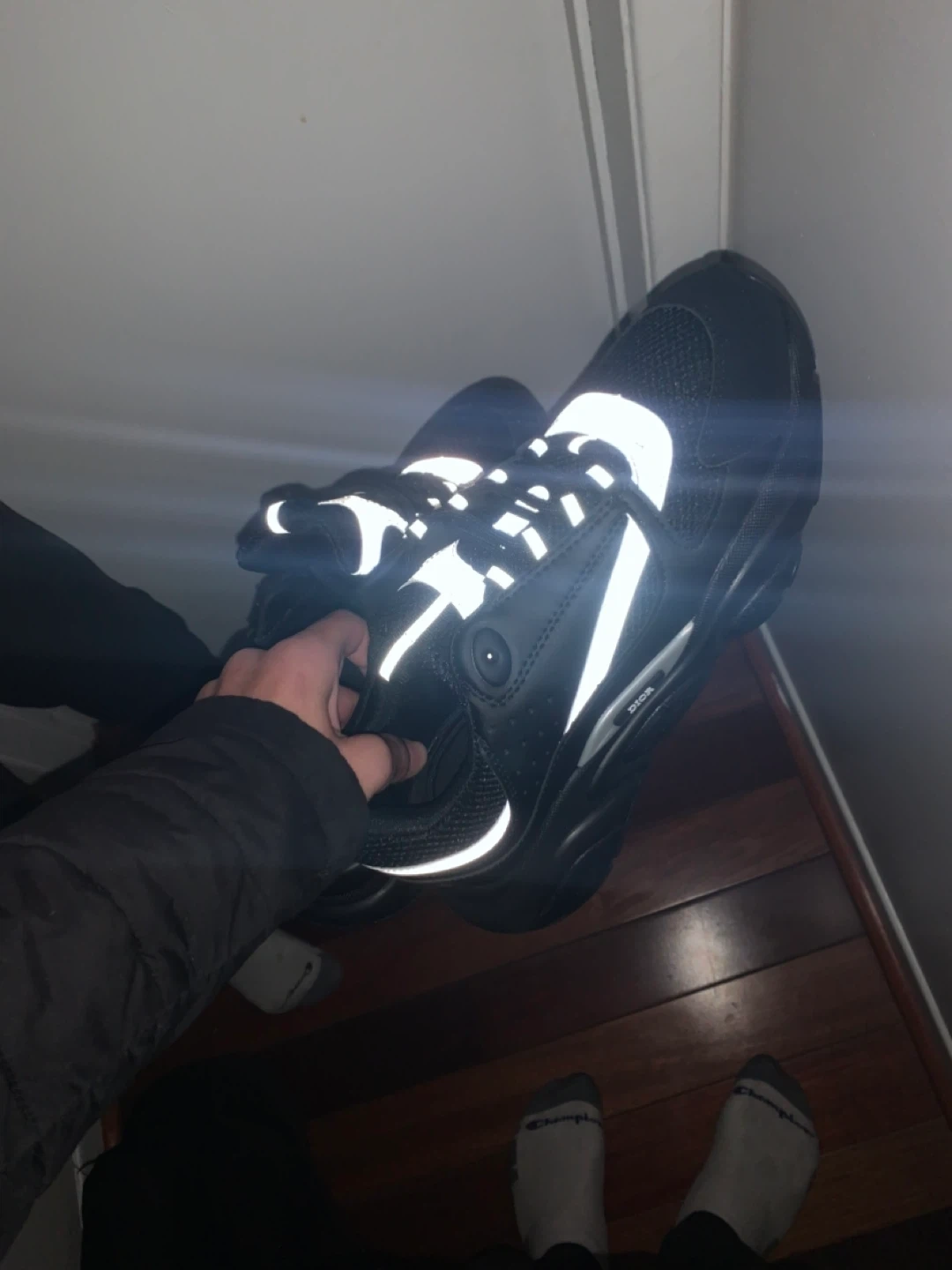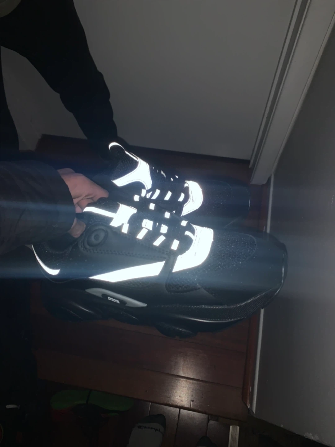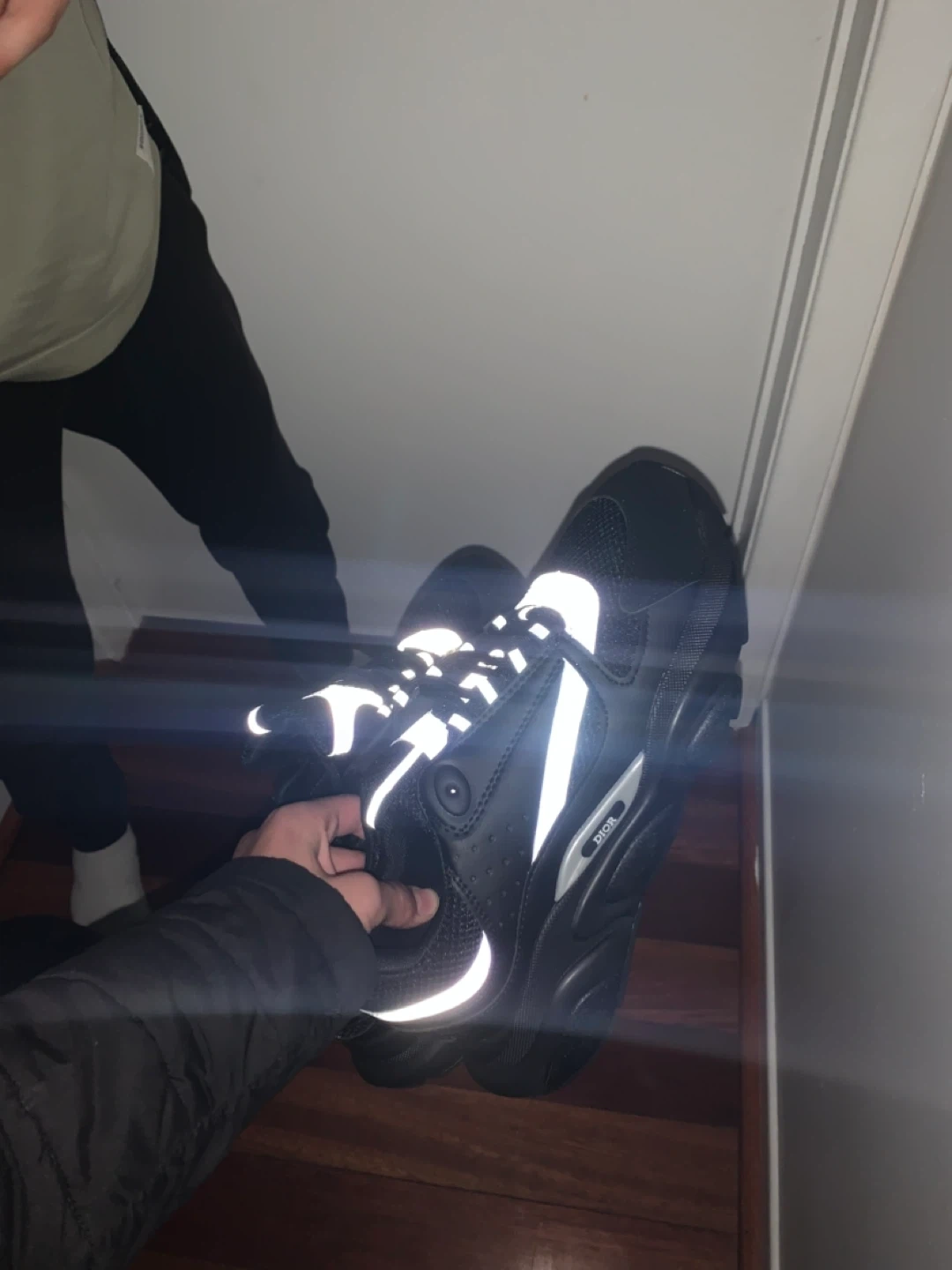 Selling a pair of Dior b22 REP sneakers in black. They are brand new they have a reflective design. I have multiple of them so feel free to buy as much as you want.