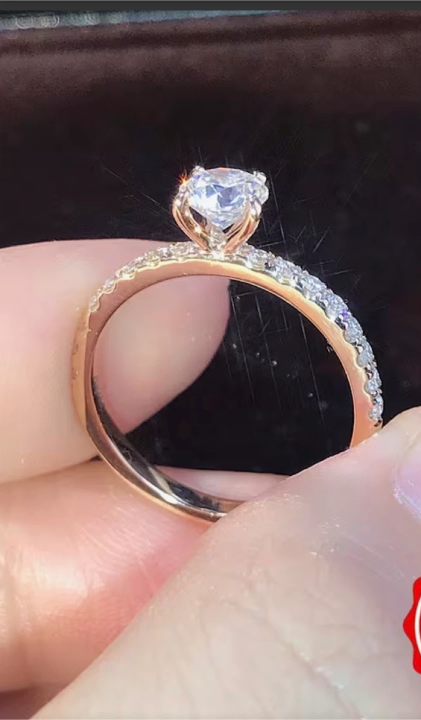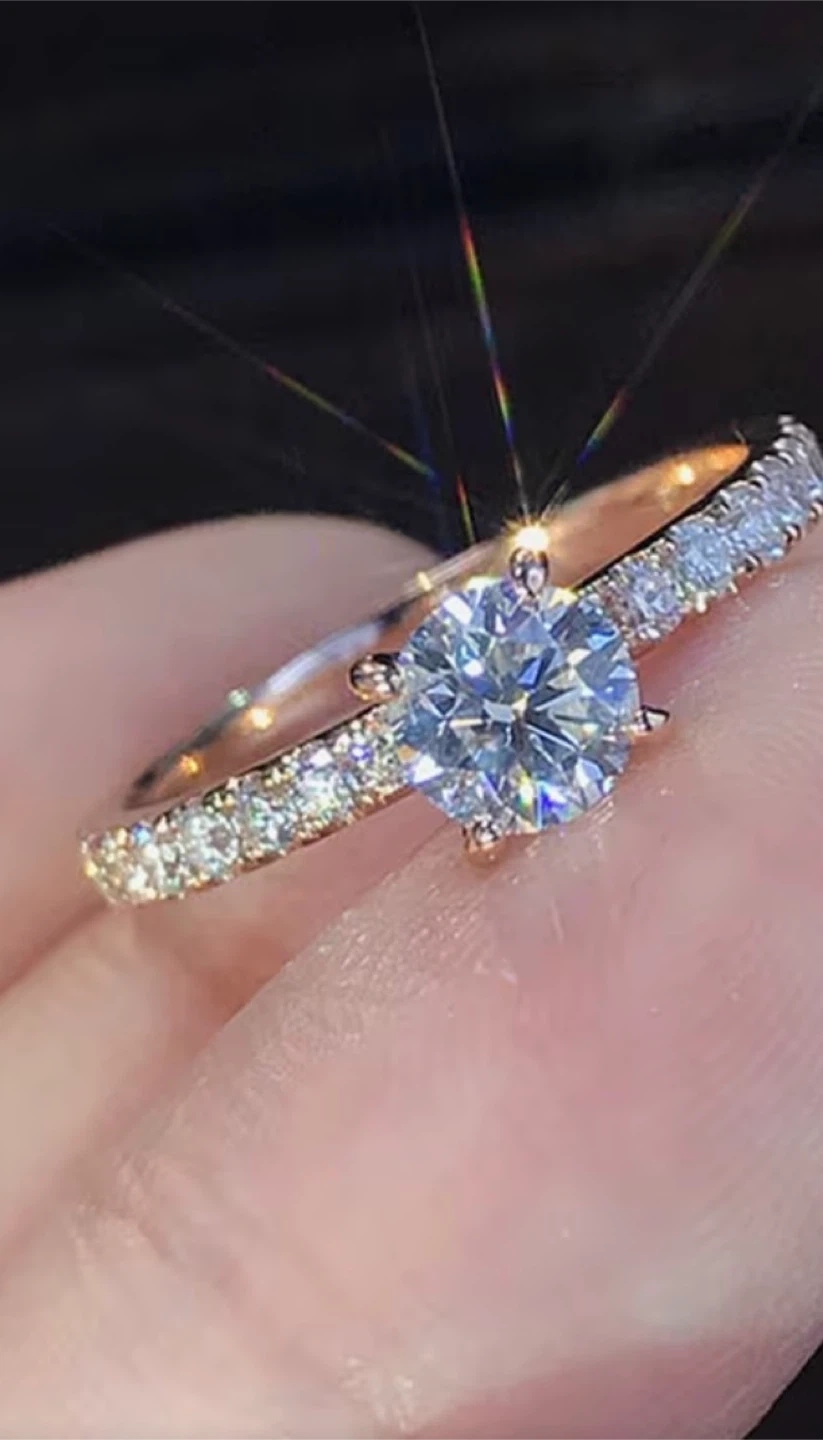 Beautiful ring. Just stunning. The ring features a round-cut stone set on a band