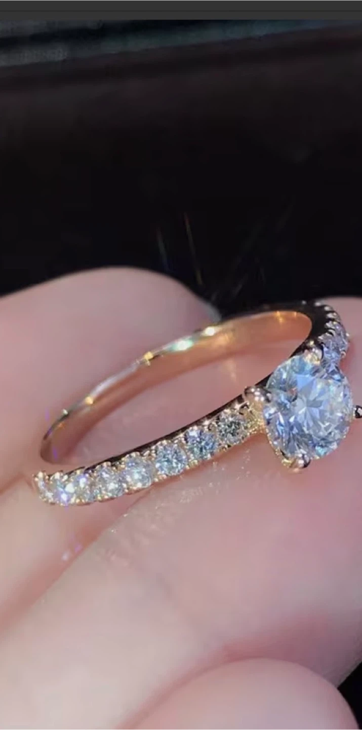 Beautiful ring. Just stunning. The ring features a round-cut stone set on a band