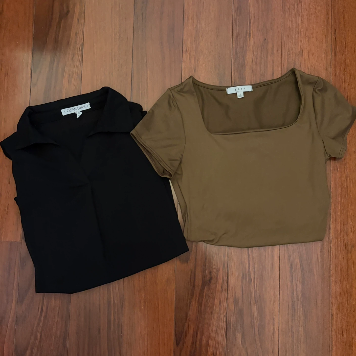 Selling two shirts perfect for office wear! The black blouse, size small, is sheer and the brown bodysuit is also in size small