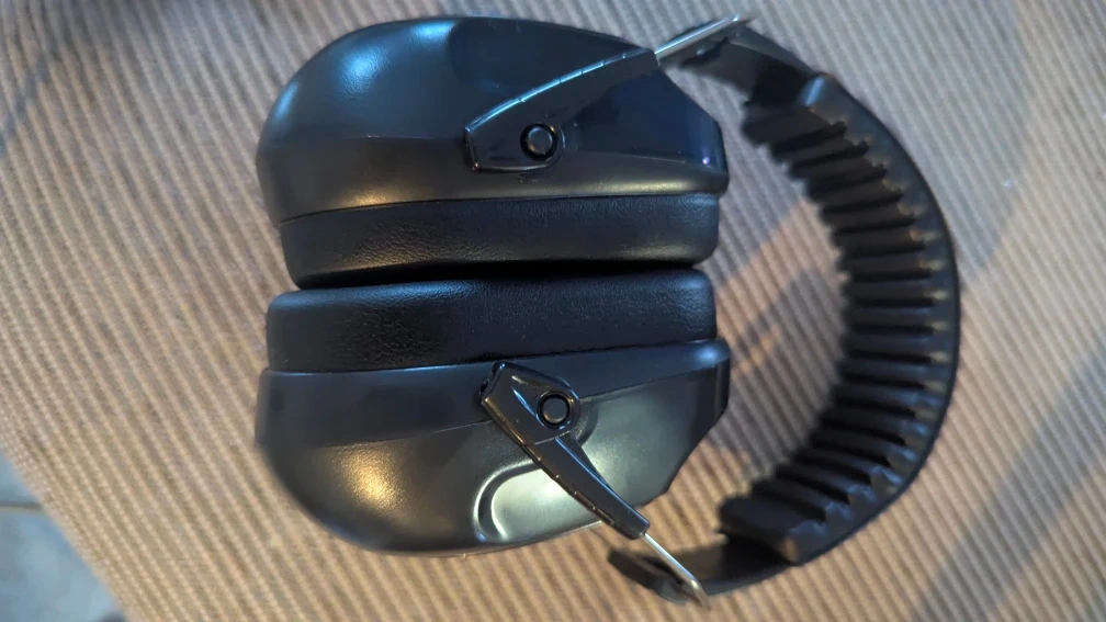 Selling black ear protection. It appears to be in good condition and is marked with 'EN 352-1'. Great for reducing noise!