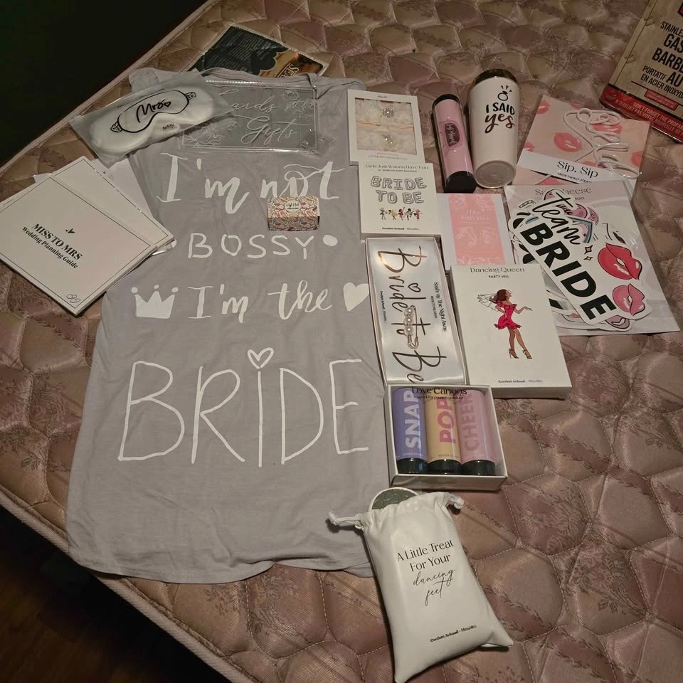 All Miss to Mrs Items NOT used. The rest of the items is stuff that I bought for my wedding & was never used. You take all, sorry not parting out. Please note the Miss to Mrs is a subscription box & has 99.9% of all of the 10 boxes. This is valued at $50-$70+ CAD per box, plus tax according to weddingwire.ca (available $600 Cdn). This is a great deal for the bride in your life.