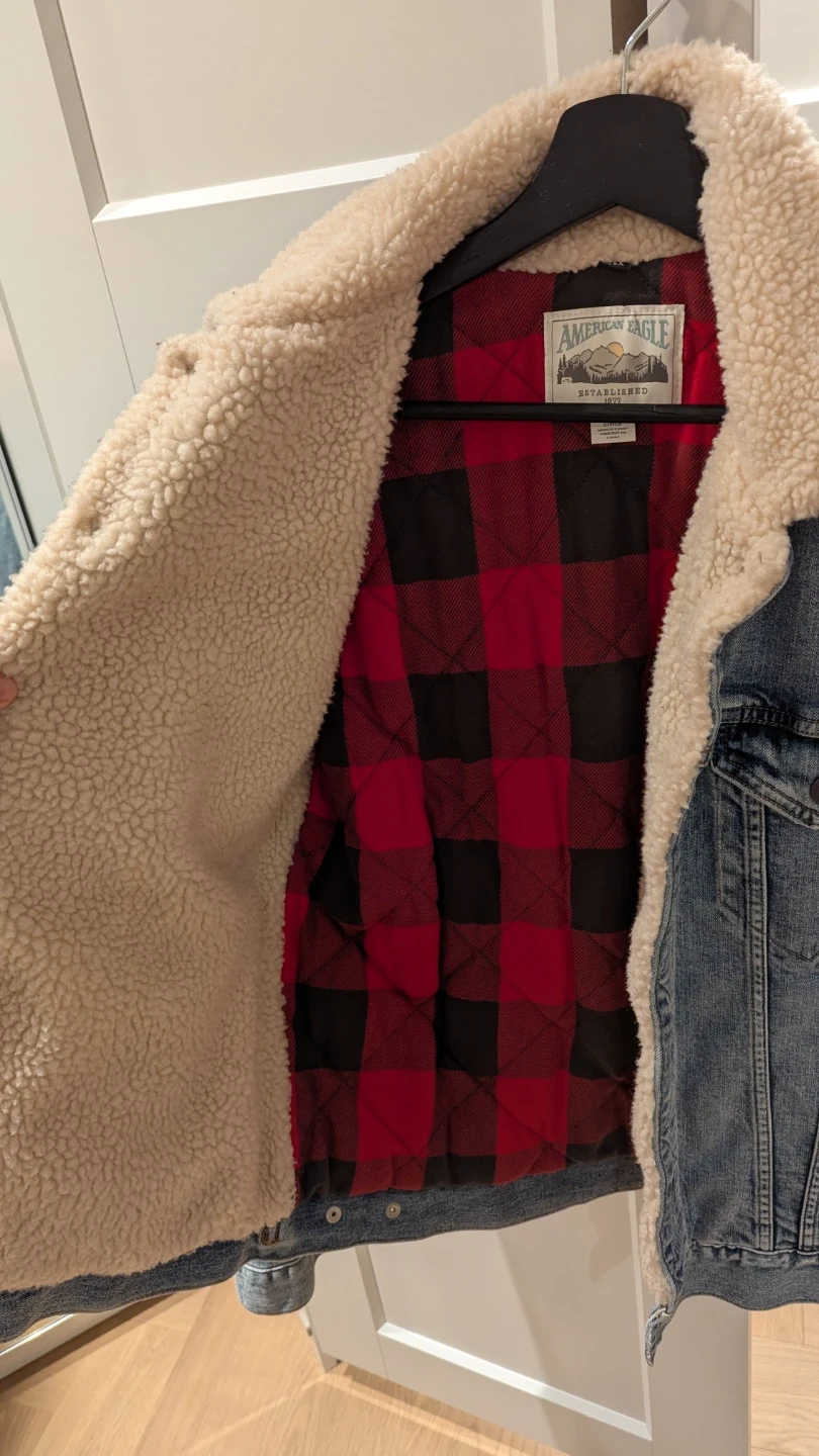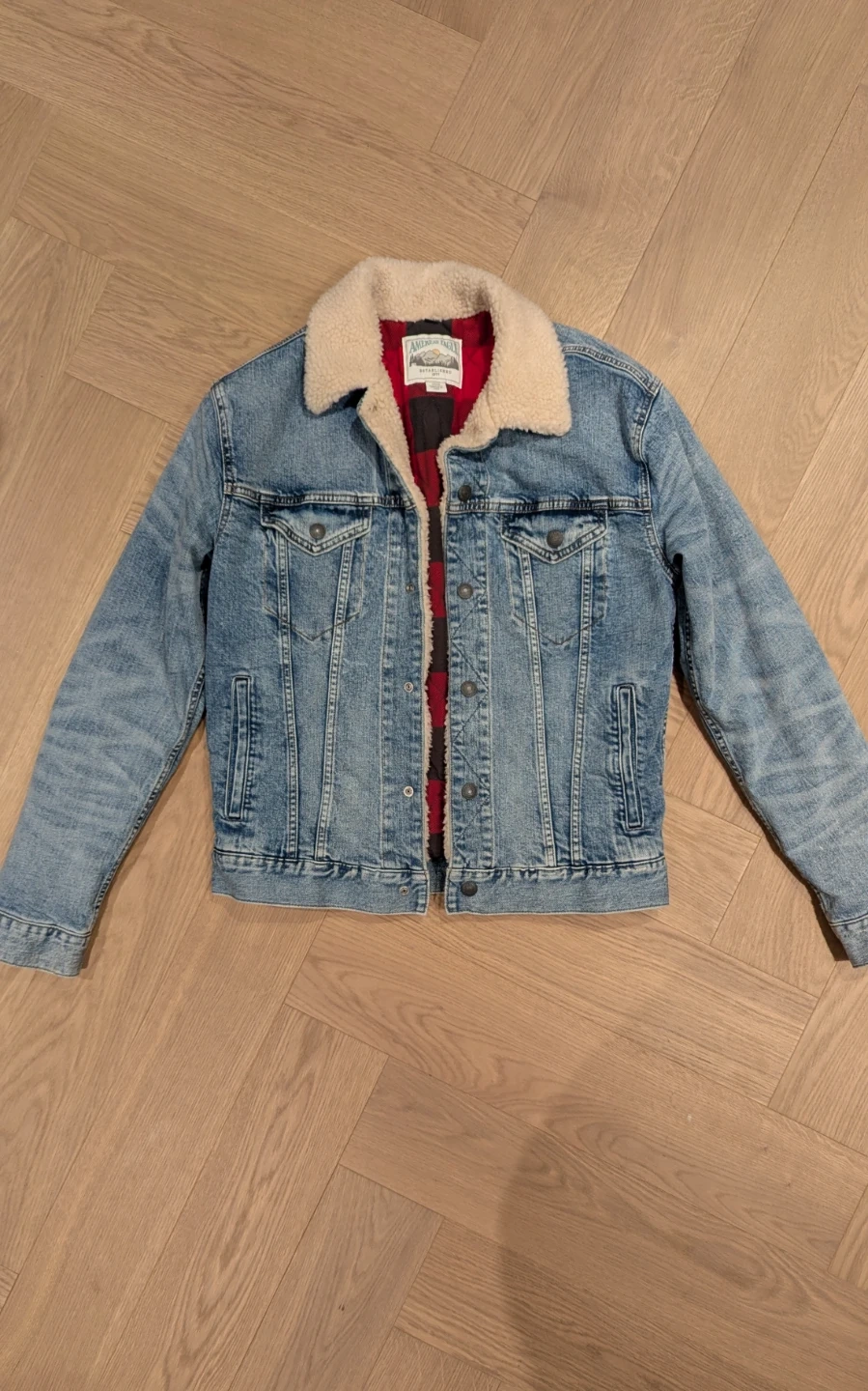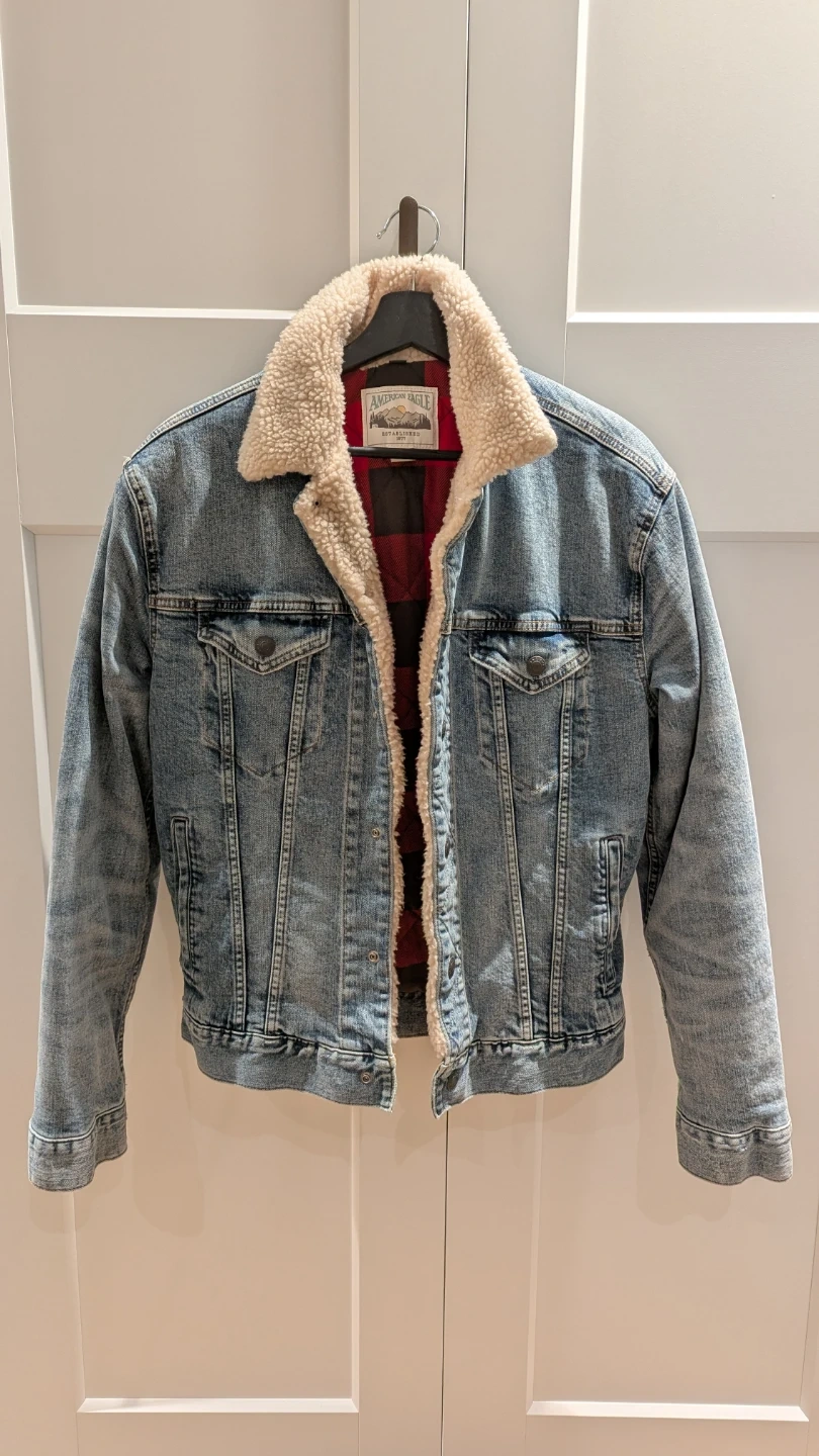 I am selling my men's American Eagle denim jacket with a cozy sherpa collar. It is super warm and cozy and in excellent condition as I have only worn it a handful of times. I find that I have not gravitated towards this jacket in the last year so I would love to give this item a second chance at life