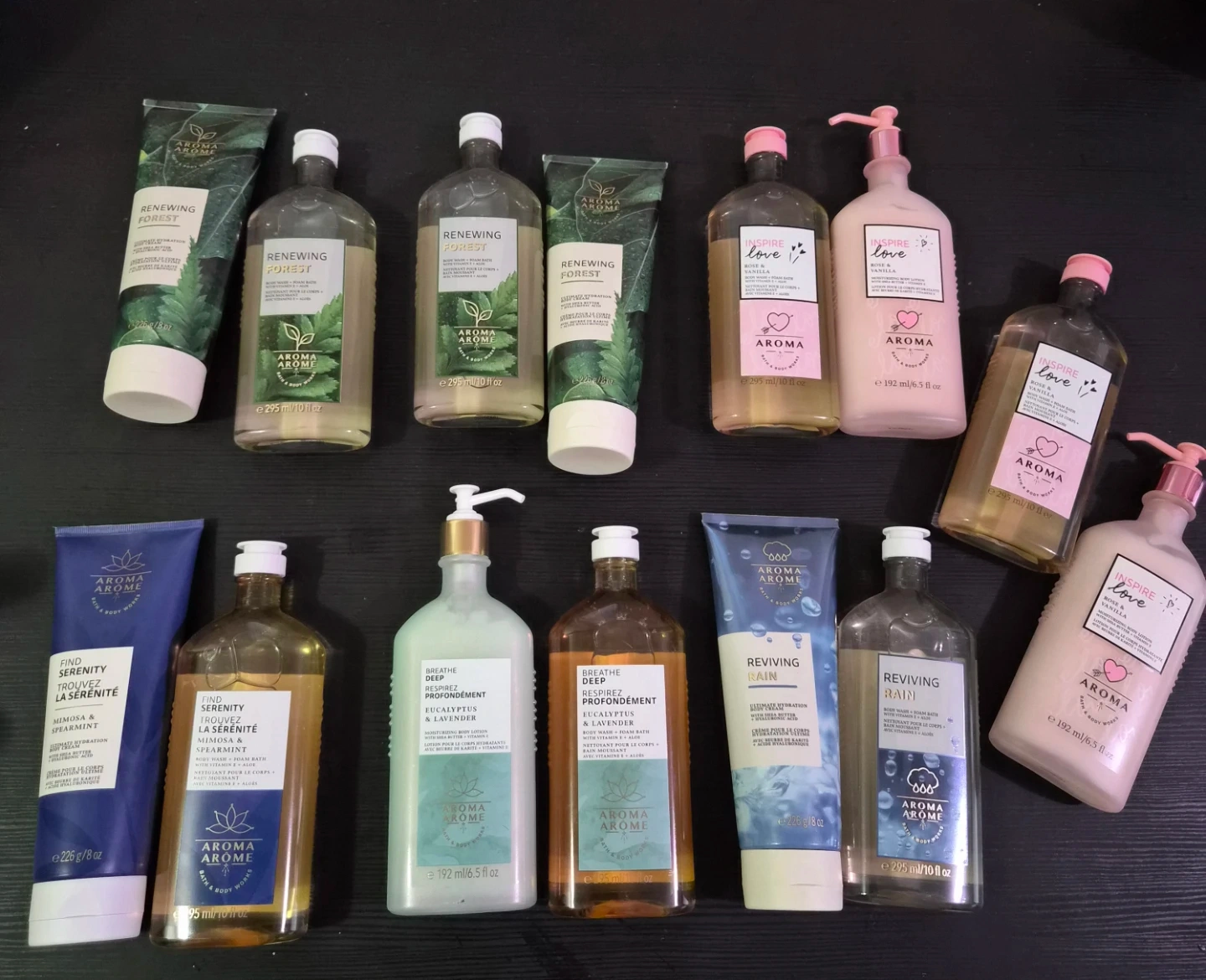 Selling a collection of Aroma Arome bath and body products from Bath & Body Works! Includes a variety of scents and types, such as body wash, and moisturizing body lotion. Perfect for trying out new fragrances or stocking up on your favourites!