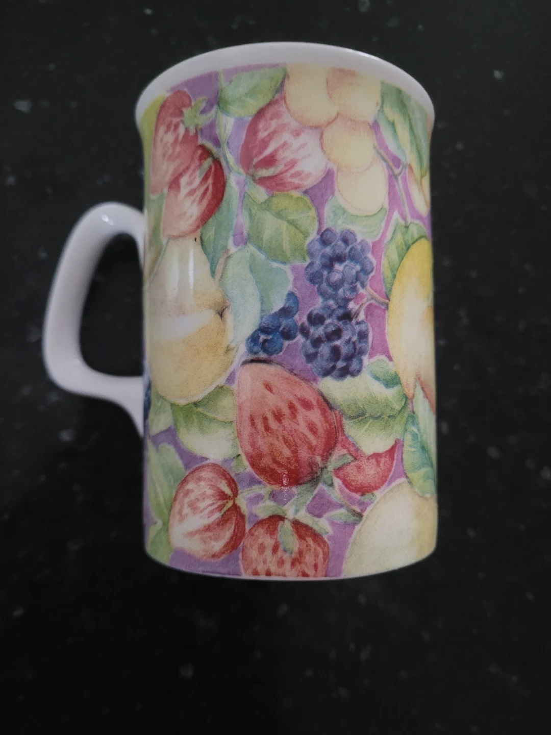 I'm selling a Royal Doulton Expressions mug from the Country Fruits collection! It's made of English bone china and features a lovely fruit design. Designed by Beverley Hewett, this mug was made in England in 1993. Perfect for adding a touch of vintage charm to your kitchen