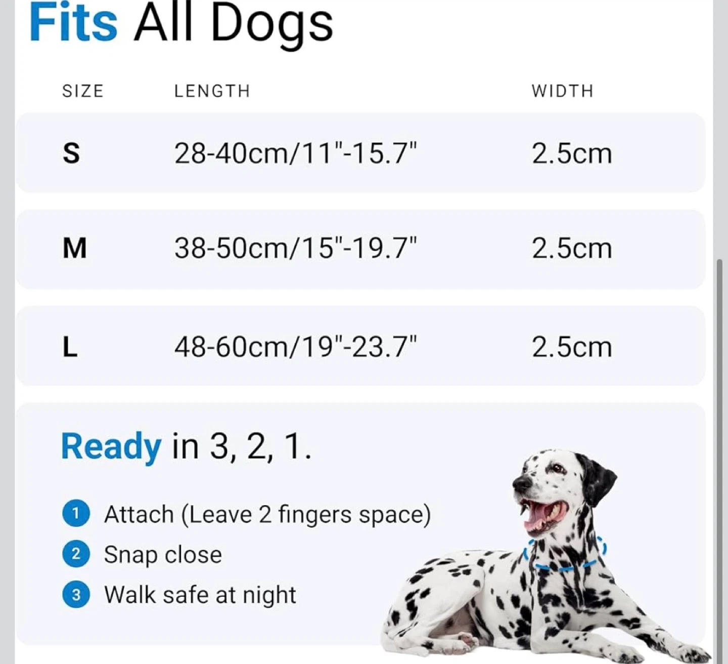 Keep your furry friend safe and visible with this Illumifun LED dog collar! It's designed to help your dog be seen in the dark, with a visibility range of up to 500 meters. This collar fits all dogs and comes in size S, which is suitable for neck lengths of 11 to 15.7 inches