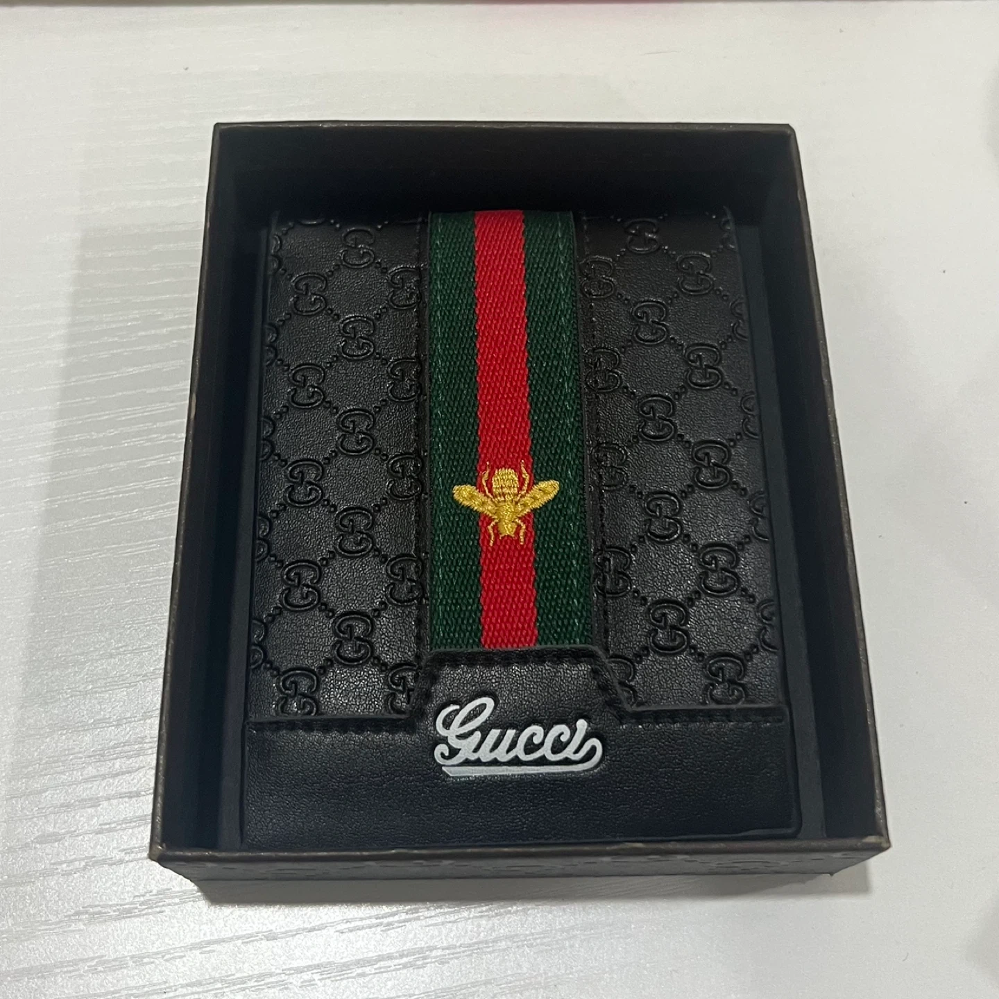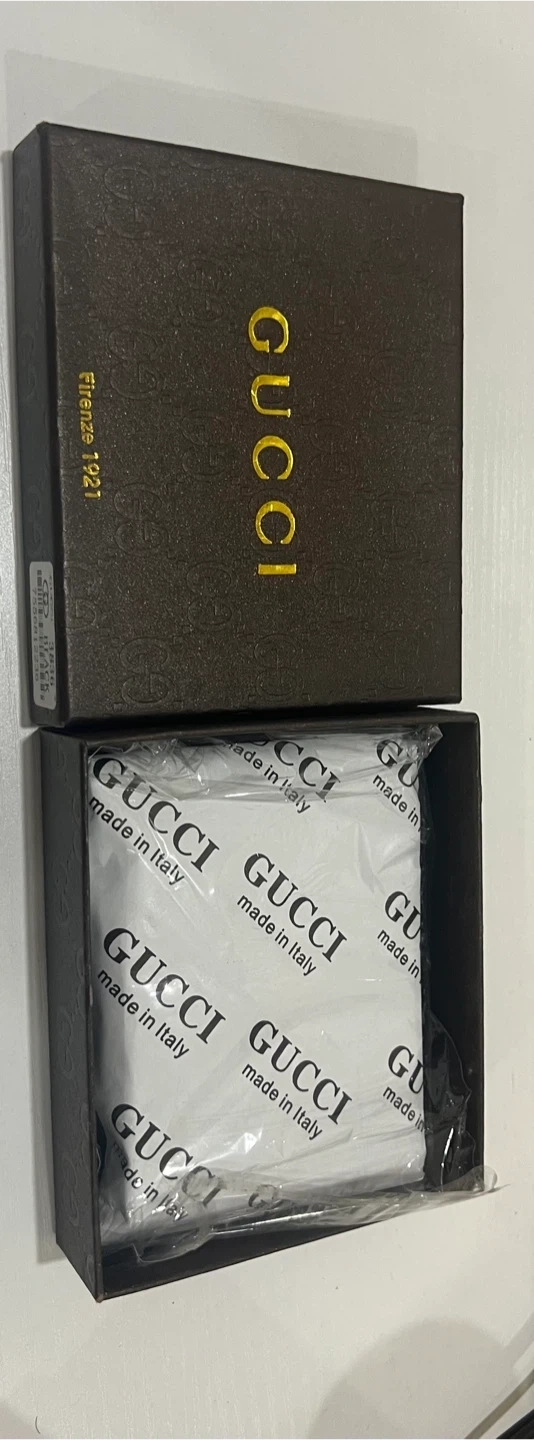 Selling a Gucci black leather wallet. It comes with the original box. The wallet features the classic Gucci design and is in great condition. Perfect for everyday use or as a gift!