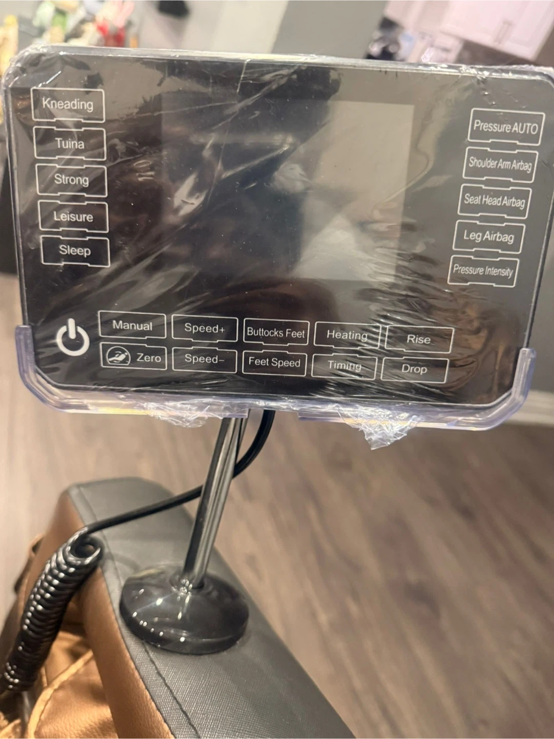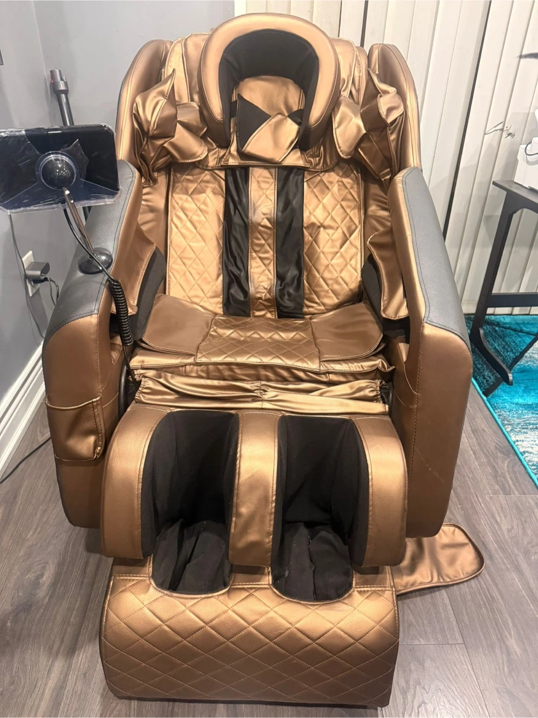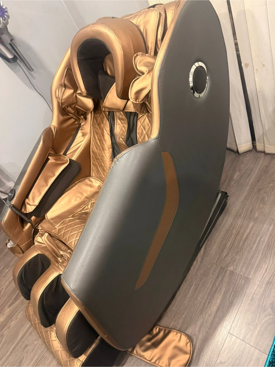 This massage chair has multiple functions including kneading, tuina, strong, leisure, and sleep modes! It also has pressure auto, shoulder arm airbag, seat head airbag, and leg airbag options. You can also adjust the speed and intensity, as well as heat and time your massage and in built Bluetooth speakers also in this