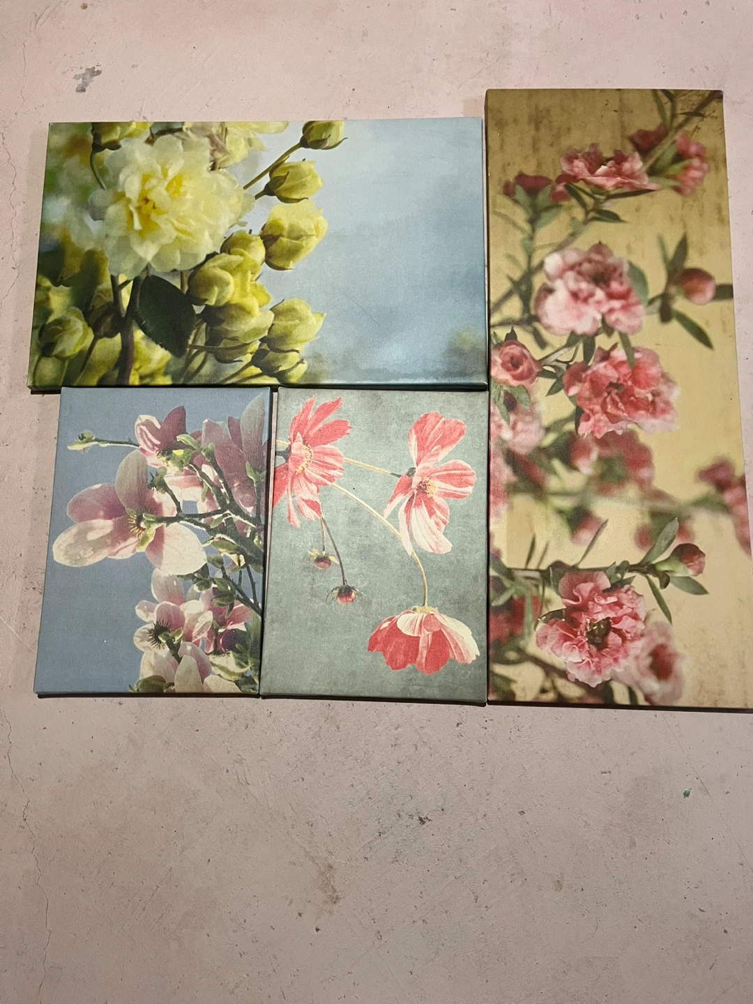 Set of 4 floral canvas prints, perfect for adding a touch of nature to your home decor! The canvases feature beautiful flower arrangements in soft colours. They're in great shape and ready to hang