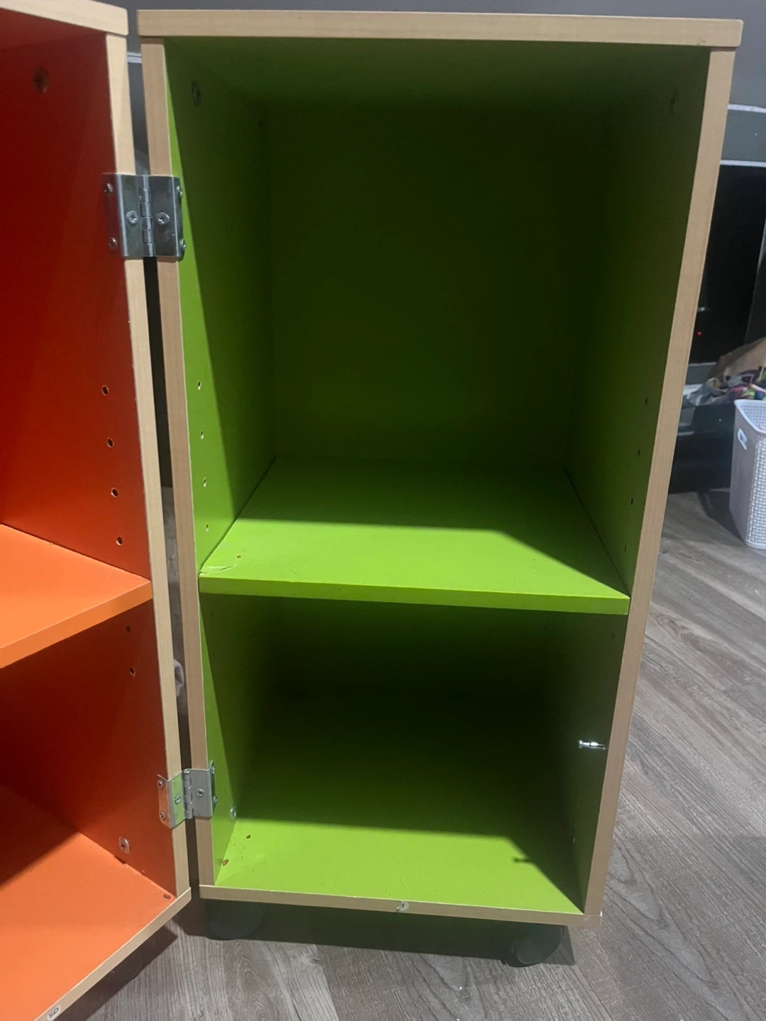 Buy & SellRolling Storage Cabinet - Orange, Green, WoodRolling Storage Cabinet - Orange, Green, Wood$20Rolling storage cabinet with colourful interior shelves. It's in good condition and ready to organize your space! Comes with one keyConditionLike newWHERE TO MEETCheck LocationView MapSELLERverifiedElizabethEcho Place843 reviews3 chats·2 favorites·33 viewsSEND CHAT TO SELLERHi Elizabeth! I’m interested in your listing.Hi Elizabeth! I’m interested in your listing.Get the Karrot app to chatSign In to chat