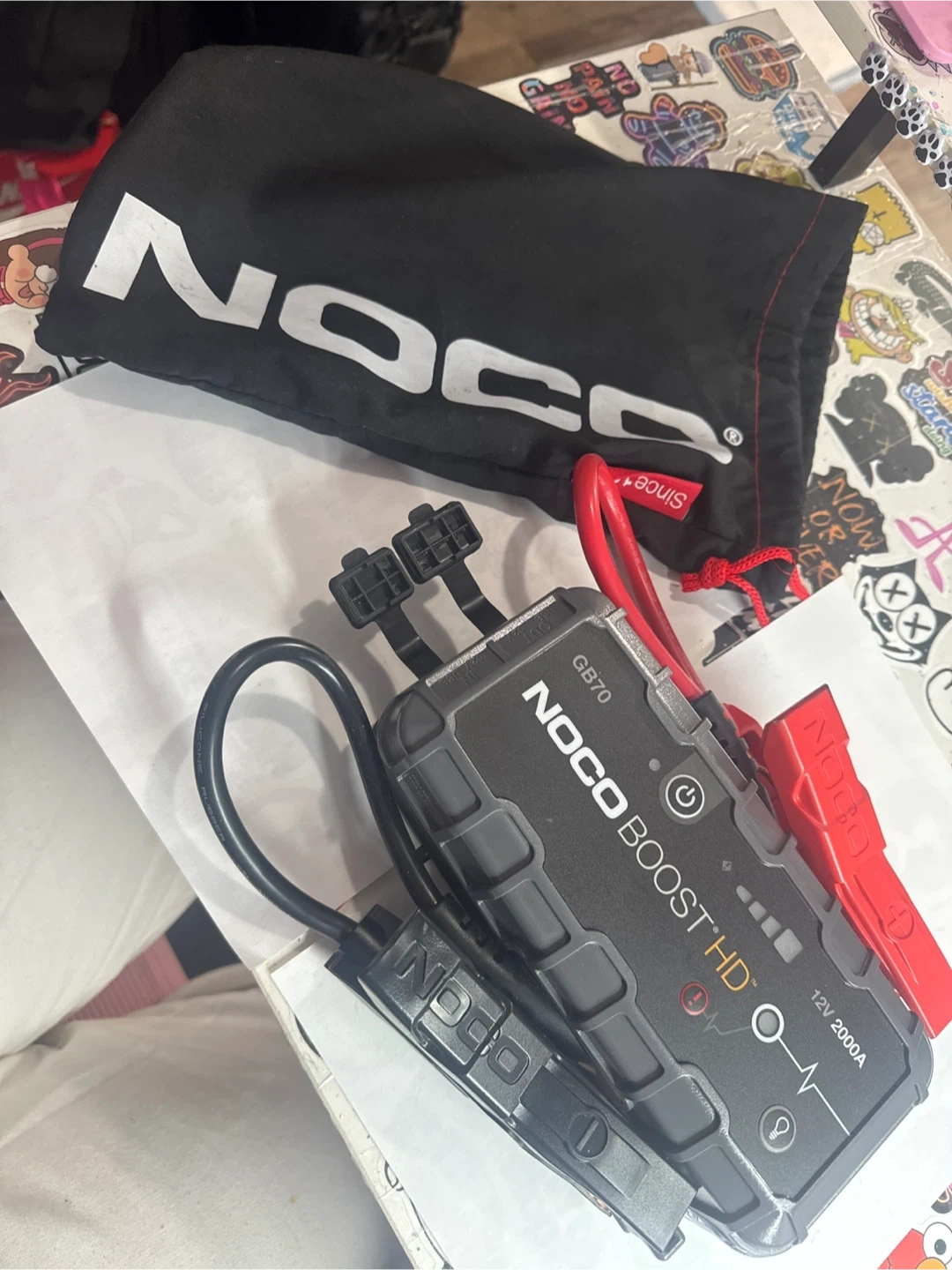 Selling a NOCO Boost HD GB70 jump starter in great condition! It's a portable lithium-ion battery jump starter pack that delivers 2,000-amps for jump starting a dead battery in seconds. The GB70 is suitable for gasoline engines up to 8 Liters and diesel engines up to 6 Liters. It features: