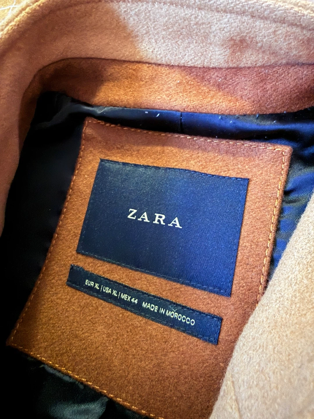 I'm selling a Zara coat in size XL. The coat is a lovely tan colour and made in Morocco. It's in great condition and ready for a new owner!