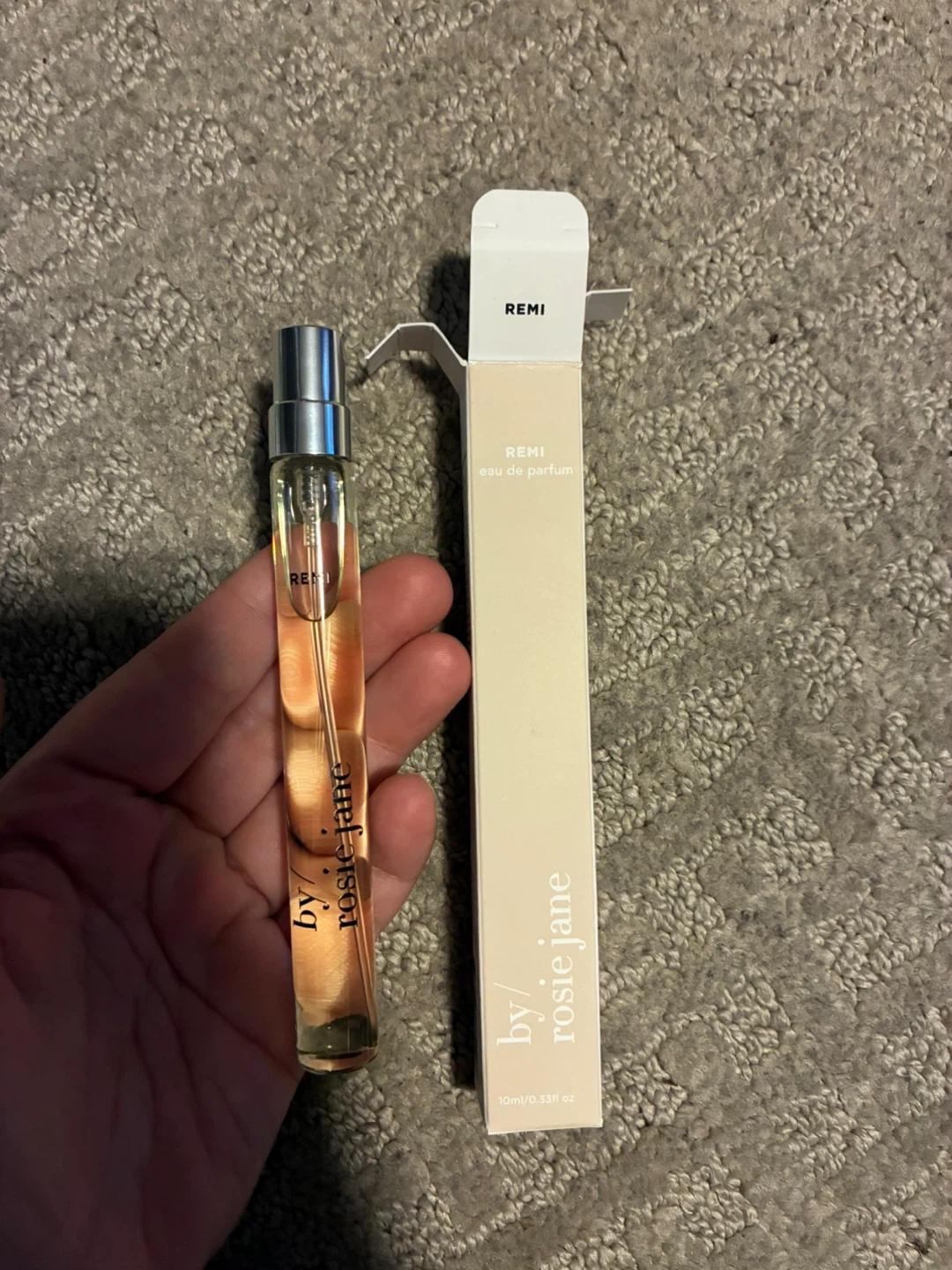 Selling a by/ rosie jane REMI eau de parfum. It's a 10ml/0.33fl oz size. The scent is a bright mandarin, fresh cardamom, and white amber. It feels like a cozy cabin in the california mountains. Clean beauty for cool humans