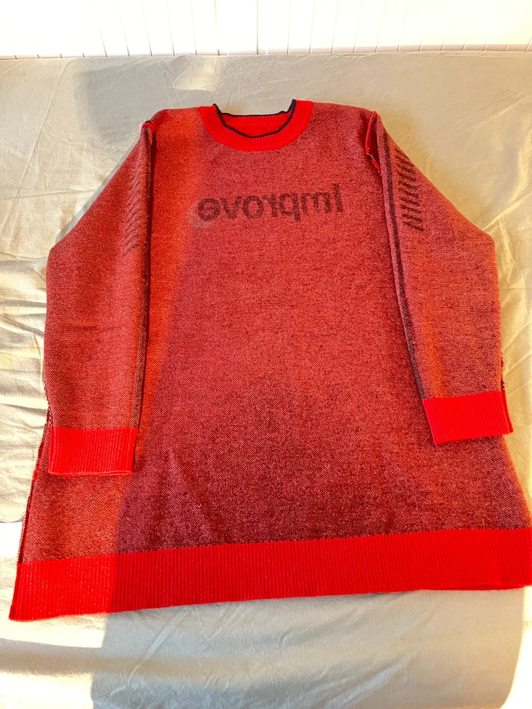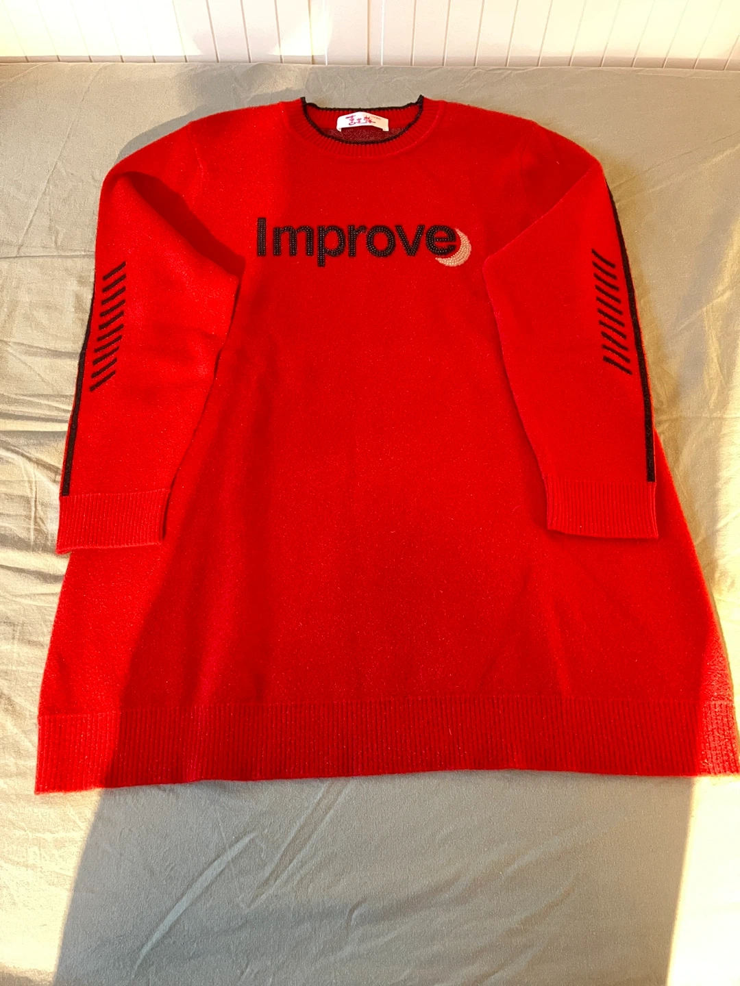 This is a red sweater dress from the brand CIVMEEI. It has the word "Improve" written on the front. It is in good condition and ready for a new owner! Never wear.