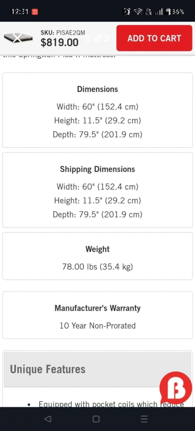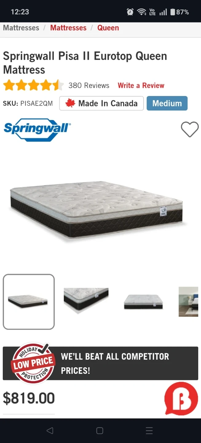 Selling a Springwall Pisa II Eurotop Queen Mattress.