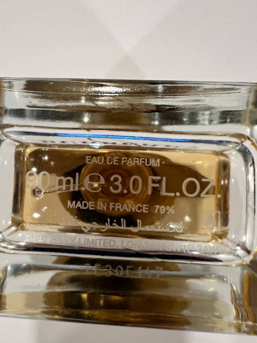 Selling a bottle of My Burberry Eau de Parfum! It's a 90ml (3.0 FL.OZ.) bottle. The fragrance was made in France.