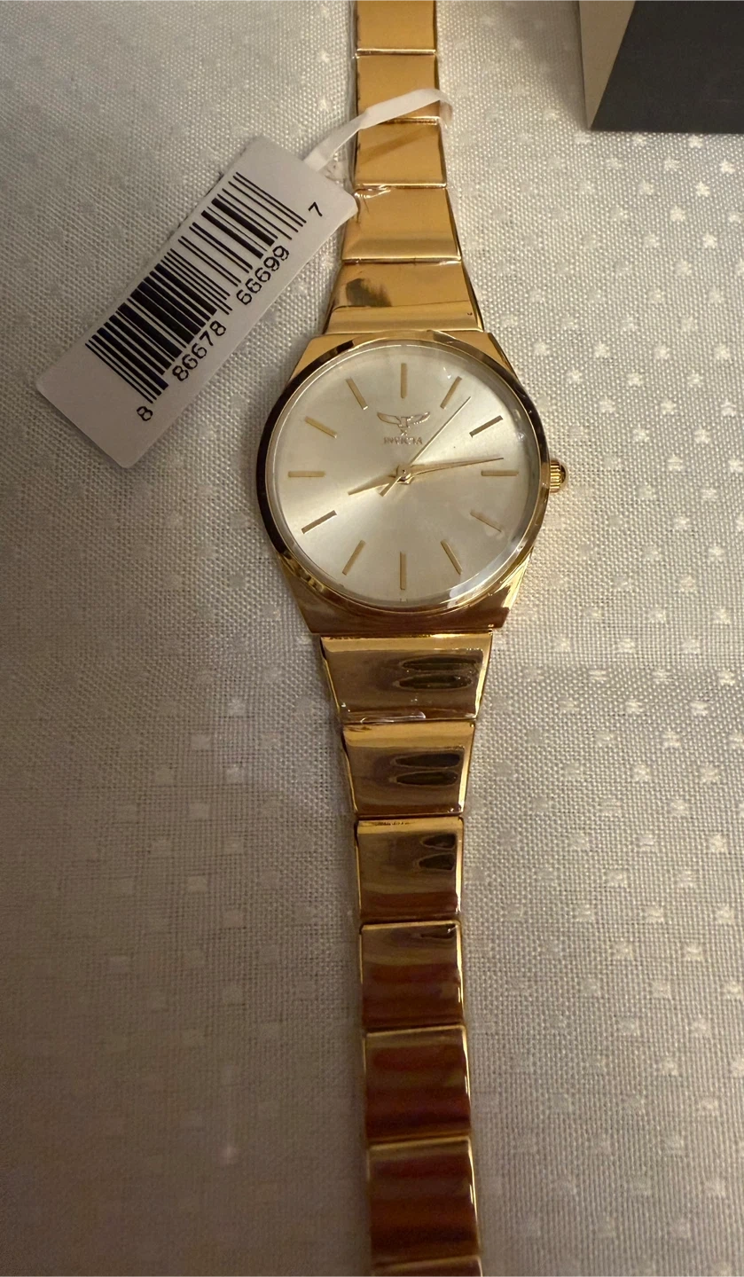Selling a beautiful gold-tone Invicta women's watch! It comes with its original box, making it perfect as a gift or a treat for yourself. The watch is brand new . Bracelet size 8 in. Original price $199.