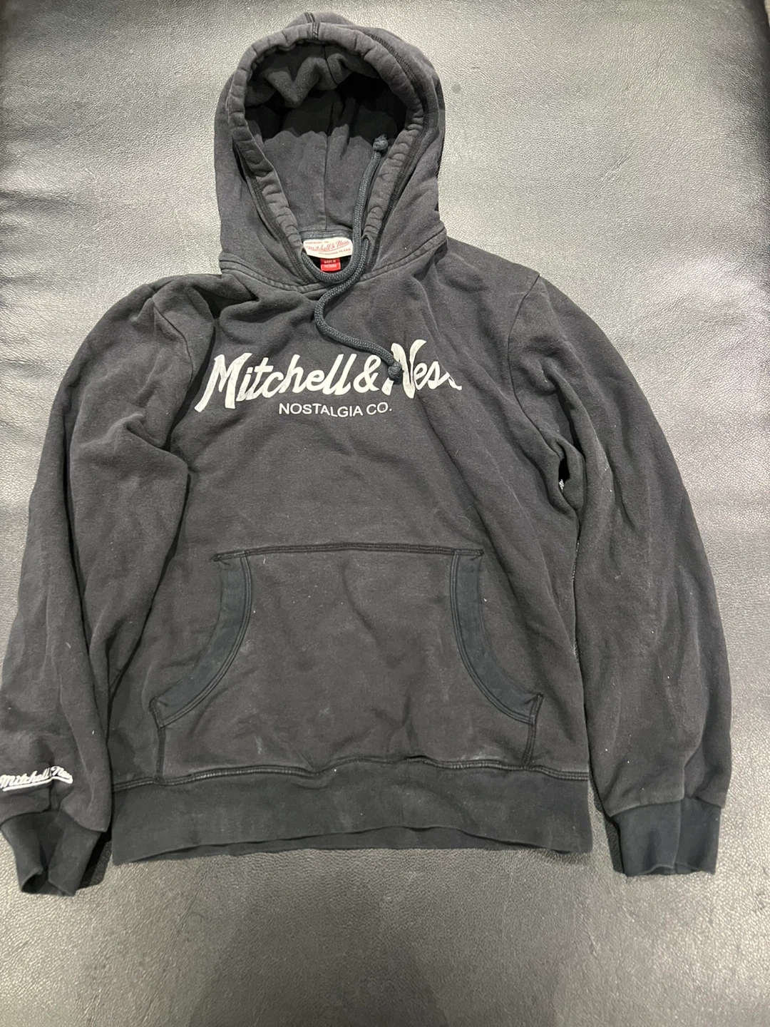 Mitchell & Ness Nostalgia Co. hoodie in size small. It's a cozy hoodie with the brand's signature logo. Perfect for casual wear!