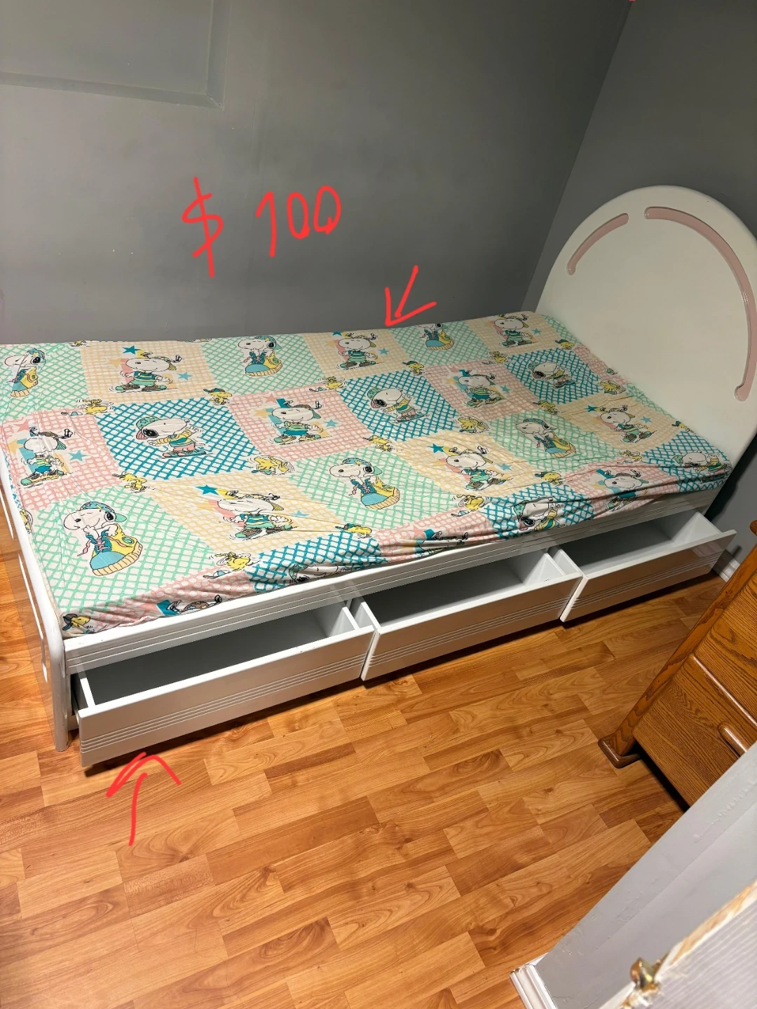 Selling a furniture bundle that includes a wooden desk, several bed frames, and a file cabinet. Perfect if you're looking to furnish a new place or upgrade your current setup