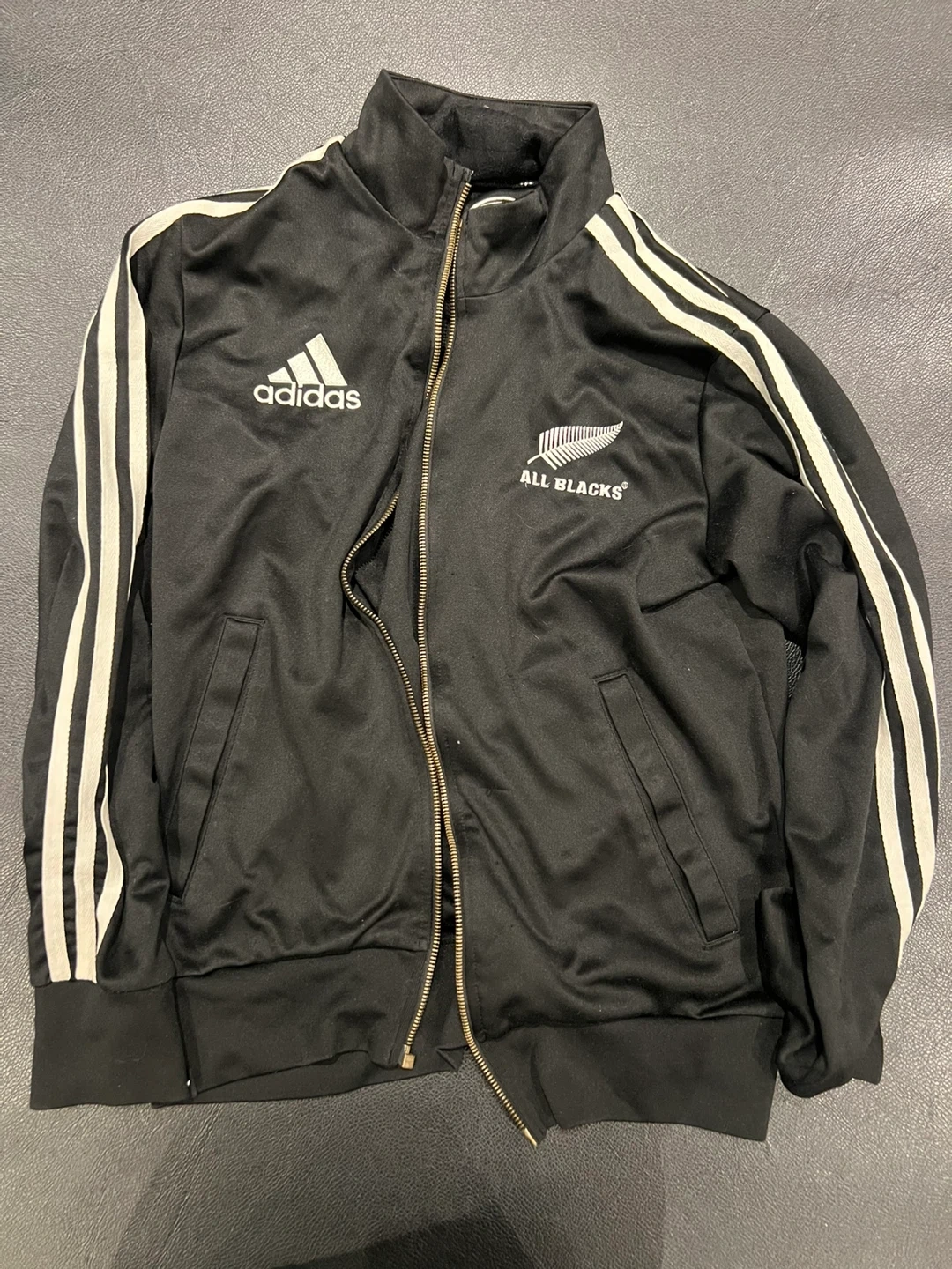 Adidas All Blacks track jacket in great condition! Features the Adidas logo and the All Blacks fern. Perfect for sports or casual wear. ZIPPER IS BROKEN but jacket in excellent condition