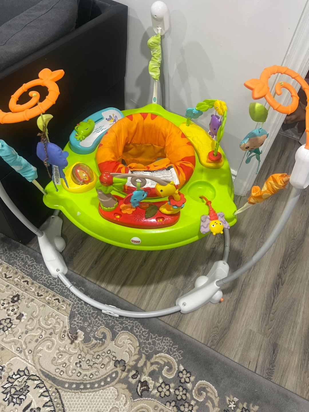Selling a gently used Fisher-Price Jumperoo! It's in great condition and ready for a new little one to enjoy. It's bright, colourful, and features lots of fun toys to keep baby entertained. Recommended for ages 6 months and up, or until baby is walking!