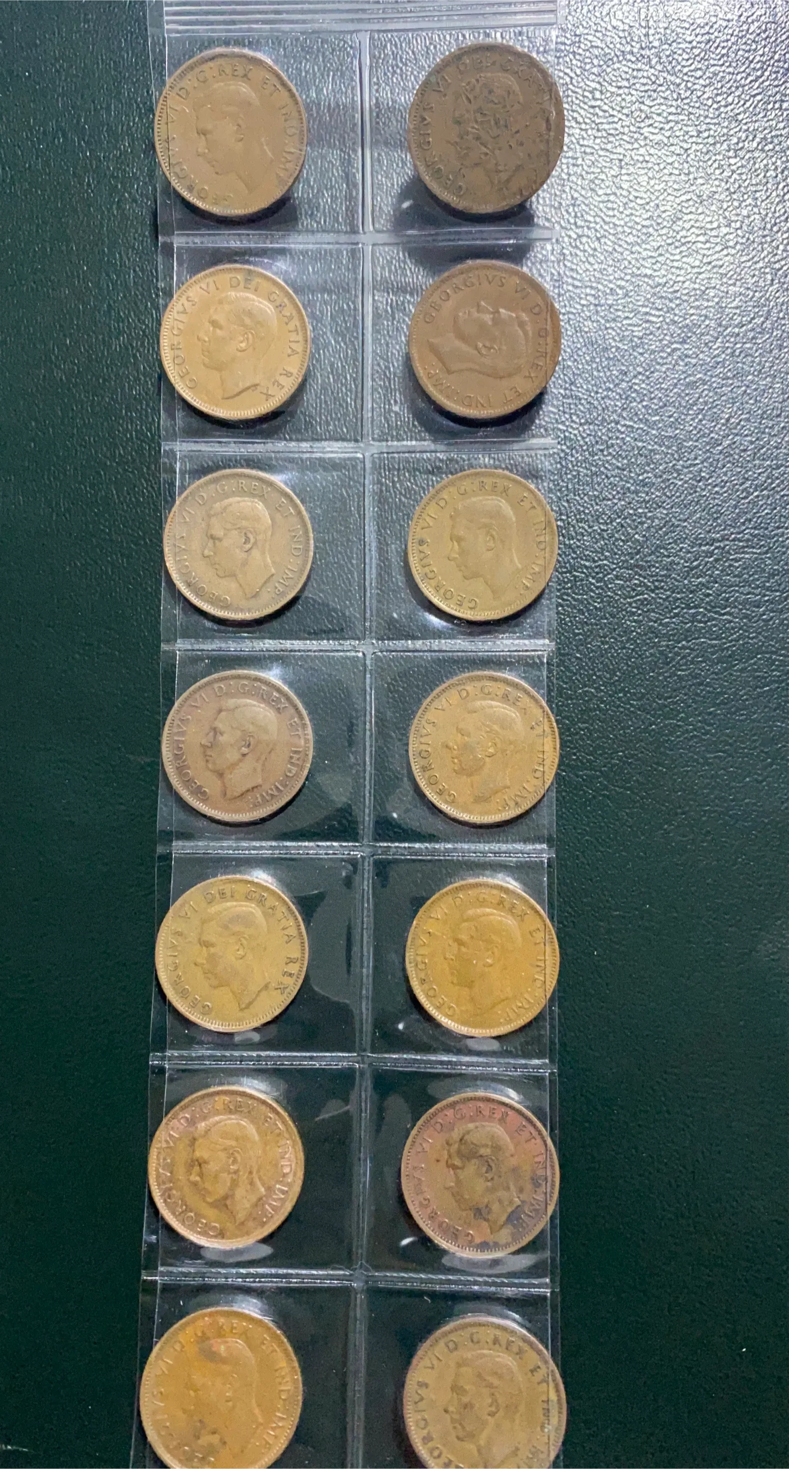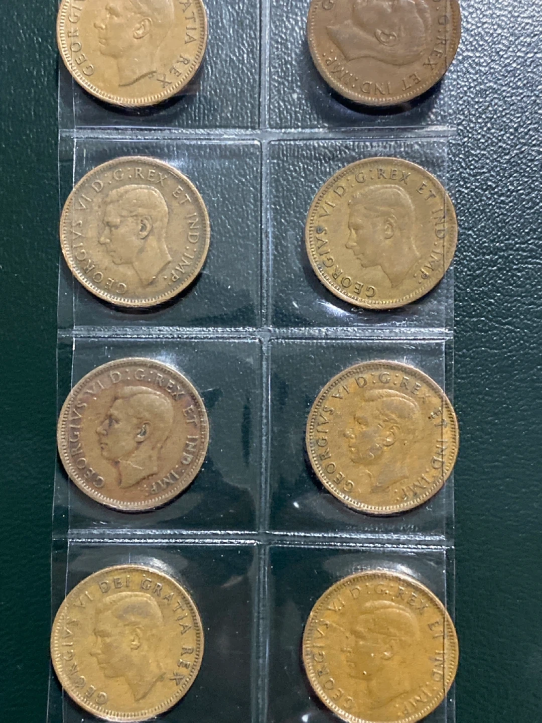 Selling a collection of vintage Canadian pennies. These coins feature King George VI and the classic maple leaf design. Dates range from the 1930s to the 1950s. A great addition to any coin collection!