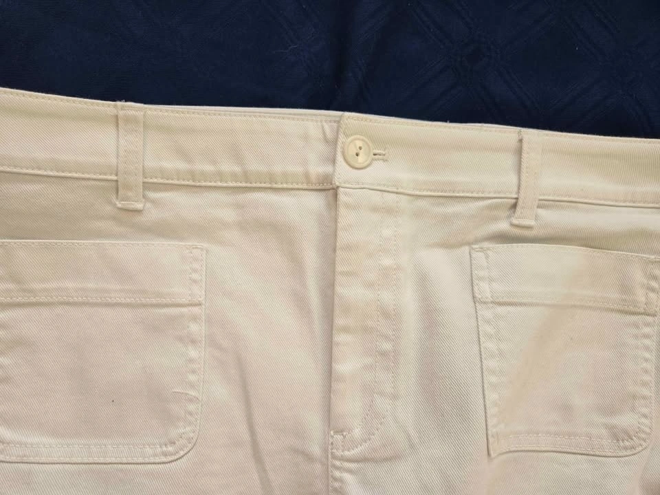 Gorgeous white denim jeans. Midrise, wide leg. Patch pockets in front and back.