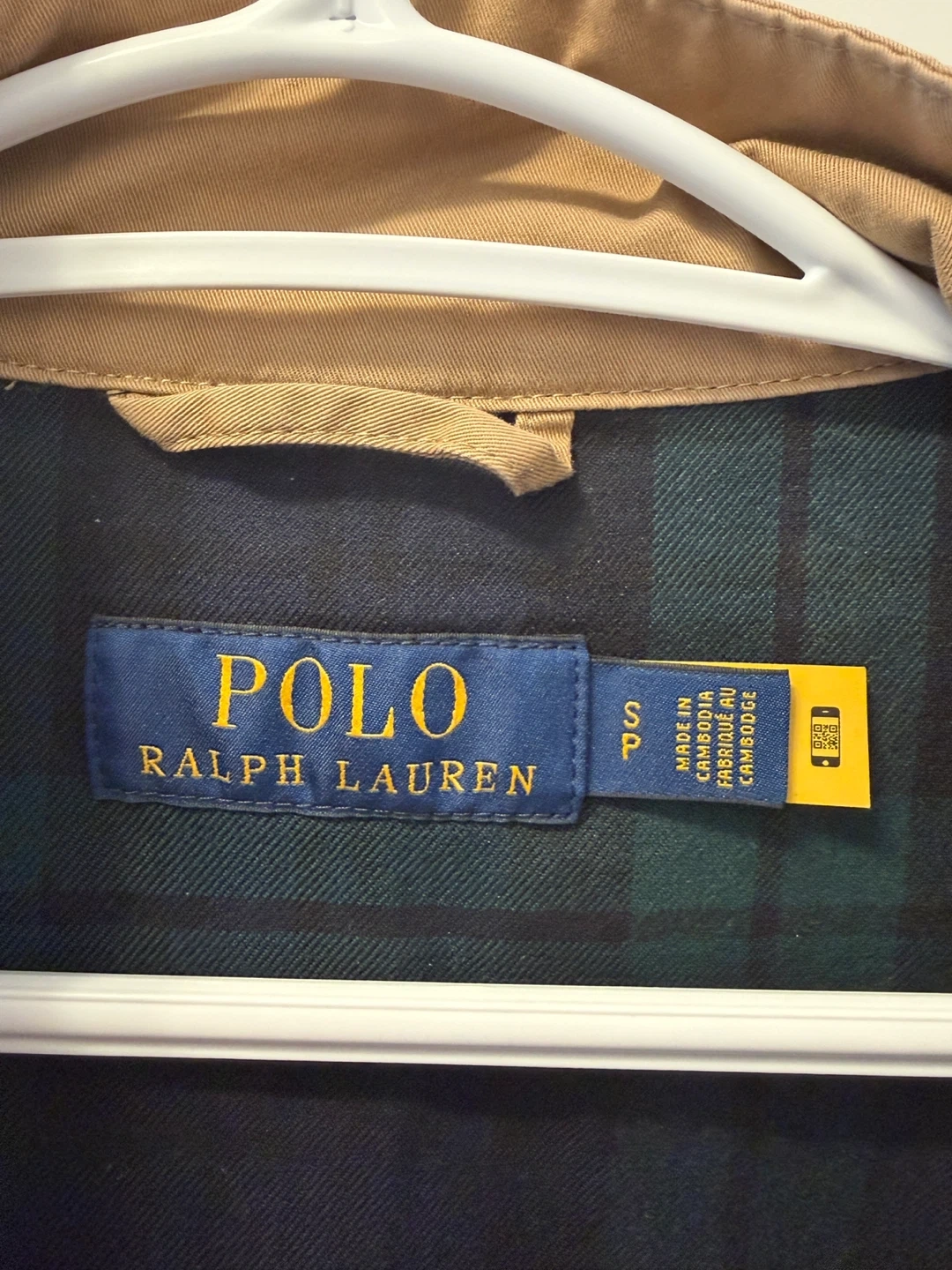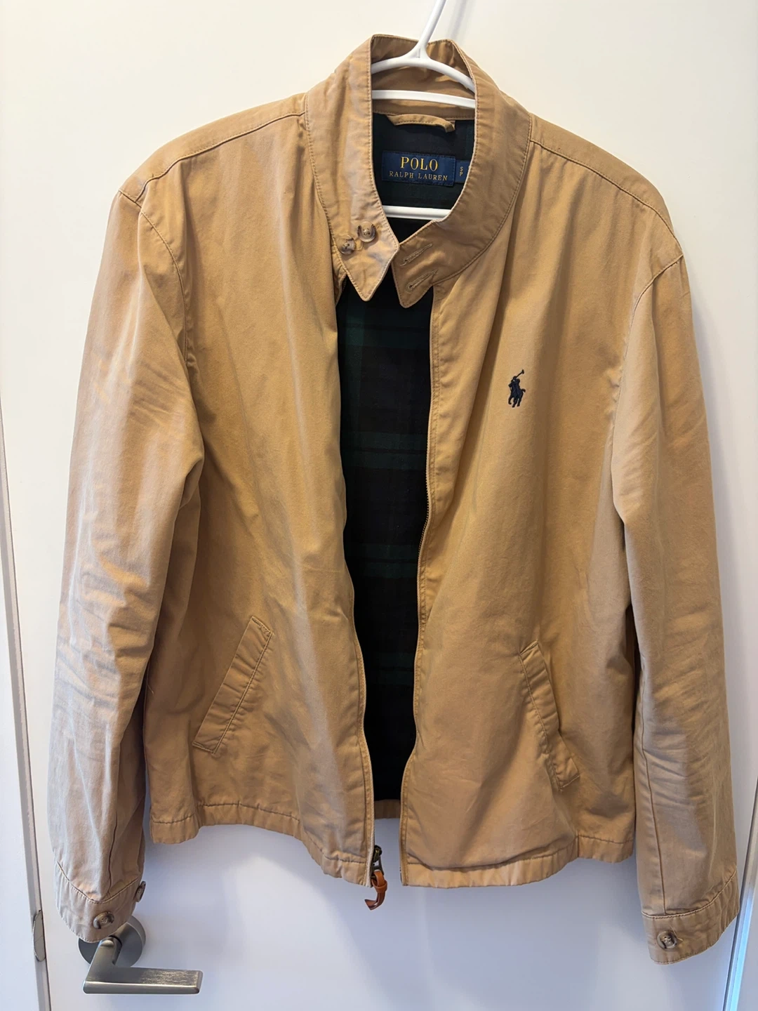 Selling an original Polo Ralph Lauren jacket in a size small! The jacket is a tan colour with a navy blue logo on the chest. The inner lining is a green and navy blue plaid pattern.