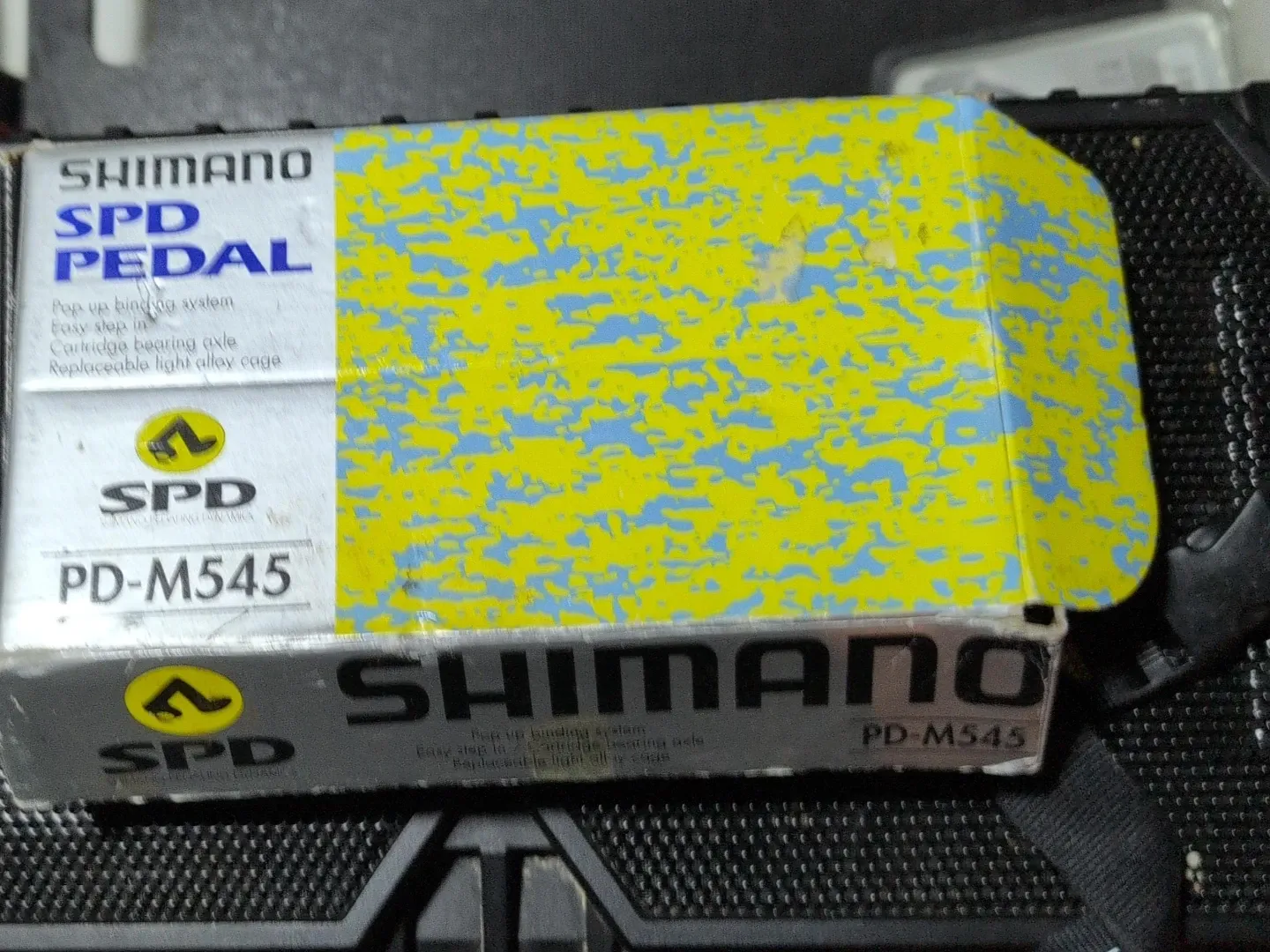 Selling a pair of Shimano SPD Pedals, model PD-M545. They're in excellent condition and come with the original box. These pedals feature a pop-up binding system, cartridge bearing axle, and a replaceable light alloy cage. Great for mountain biking!