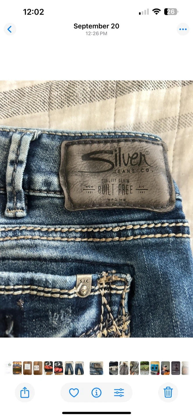 Selling a pair of Silver Jeans Co. women's denim jeans. They are in good condition and have a stylish, worn-in look. Perfect for casual wear!