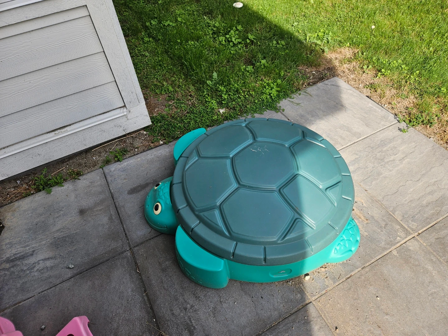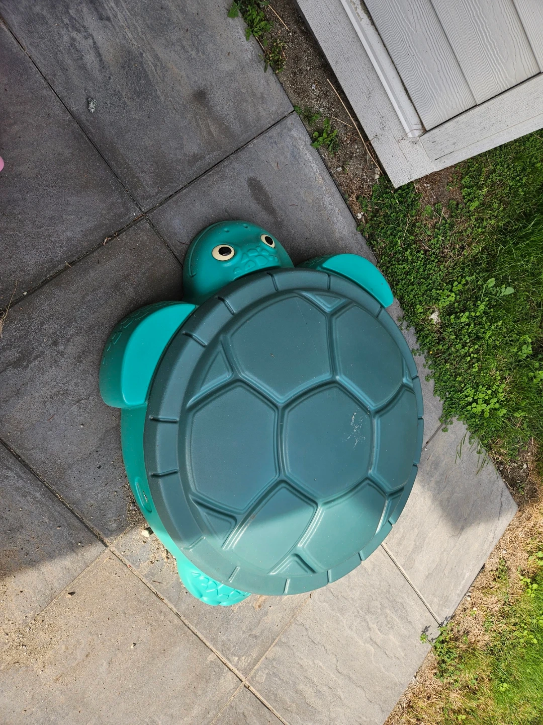 This turtle sandbox is perfect for kids to enjoy some outdoor fun! It's in good condition, but could use a wipe down first and ready for a new home. It's a fun way for kids to play and explore!