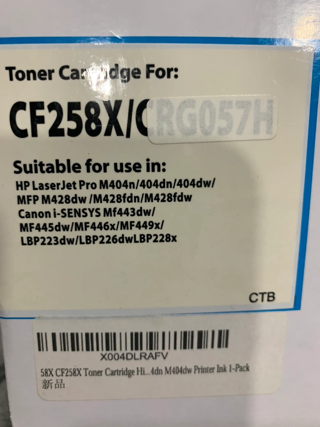 Toner cartridge CF258X/CRG057H for use in HP LaserJet Pro M404n/404dn/404dw/ MFP M428dw/M428fdn/428fdw and Canon i-SENSYS Mf443dw/ MF445dw/MF446x/MF449x/ LBP223dw/LBP226dwLBP228x printers